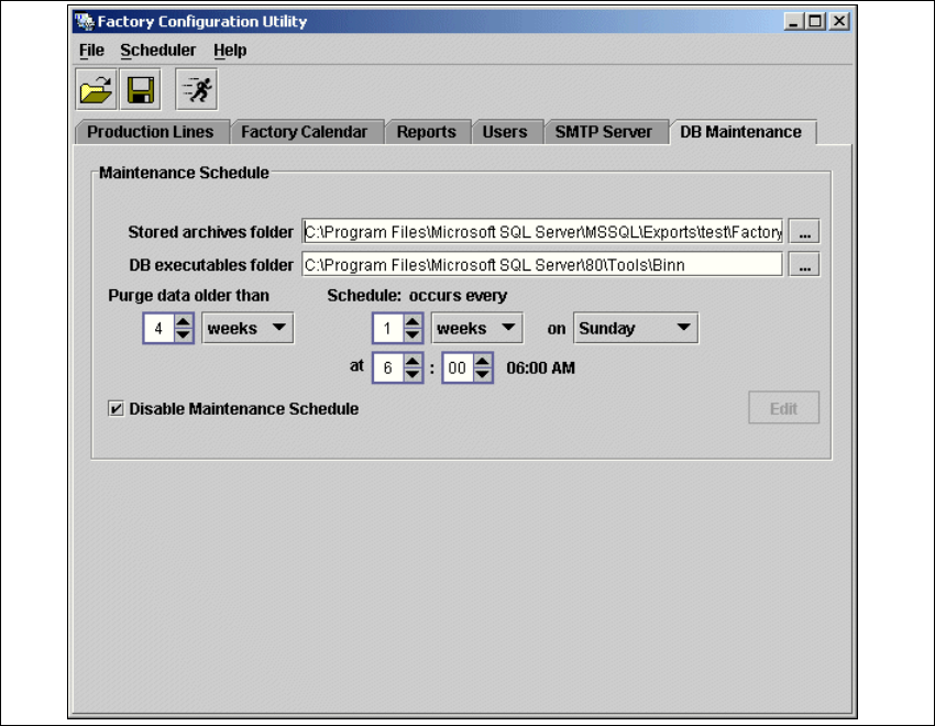 Define the maintenance schedule for the factory database, here. 4
