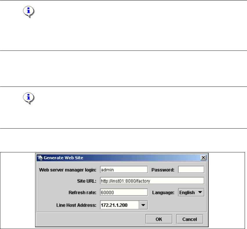 To generate a factory website, you require web server manager privileges (Tomcat administrator)