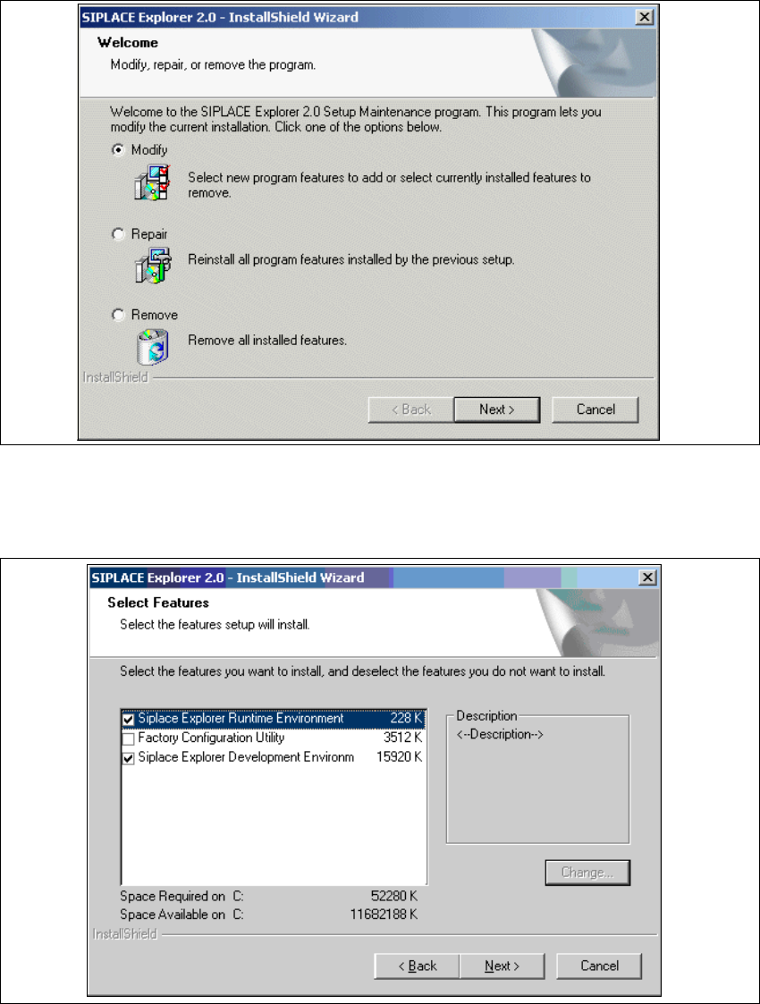 Start Programs SIPLACE Explorer 2.0 Modify-Uninstall.