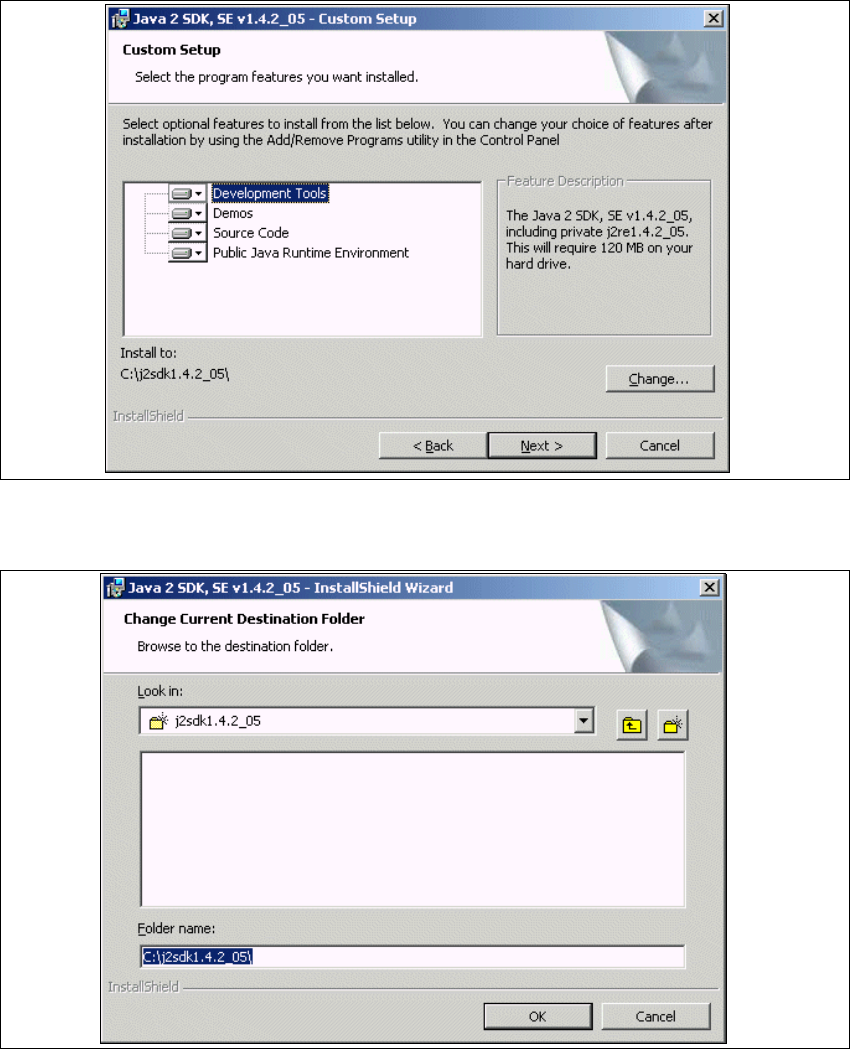 application. The default folder is C:\j2sdk1.4.2_05\. This can be altered if necessary.
