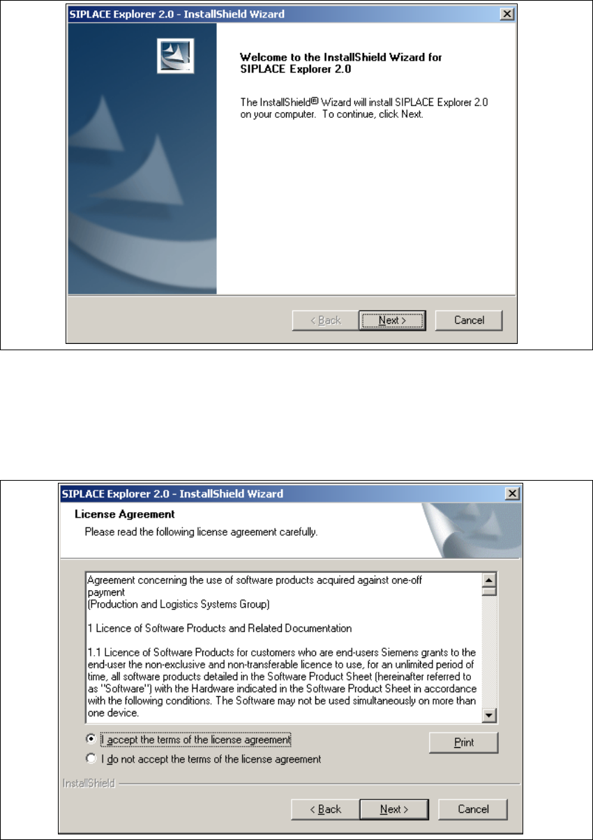 Fig. 3 - 15 SIPLACE Explorer setup - license agreement