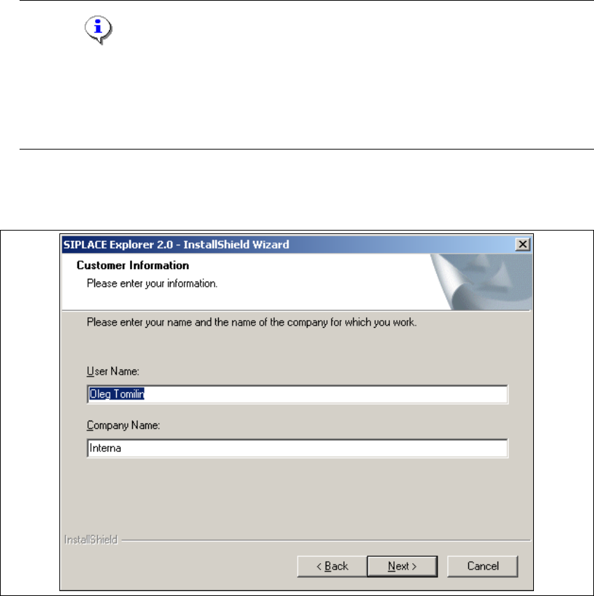 3.3 SIPLACE Explorer 2.0 Installation Edition 02/2005 EN