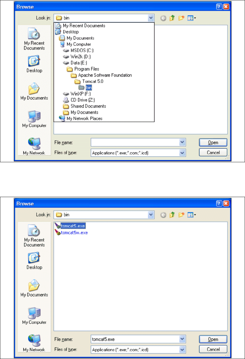 In the Tomcat installation path, click on the ..\Tomcat 5.0\bin path and then on the Open