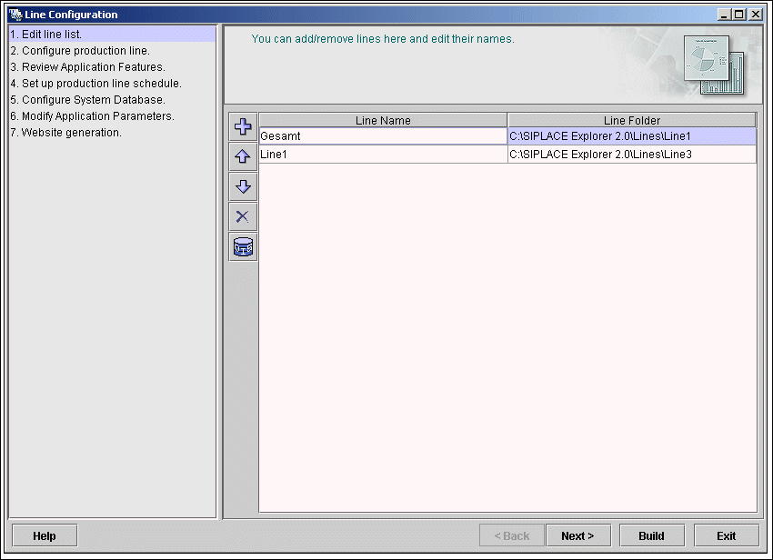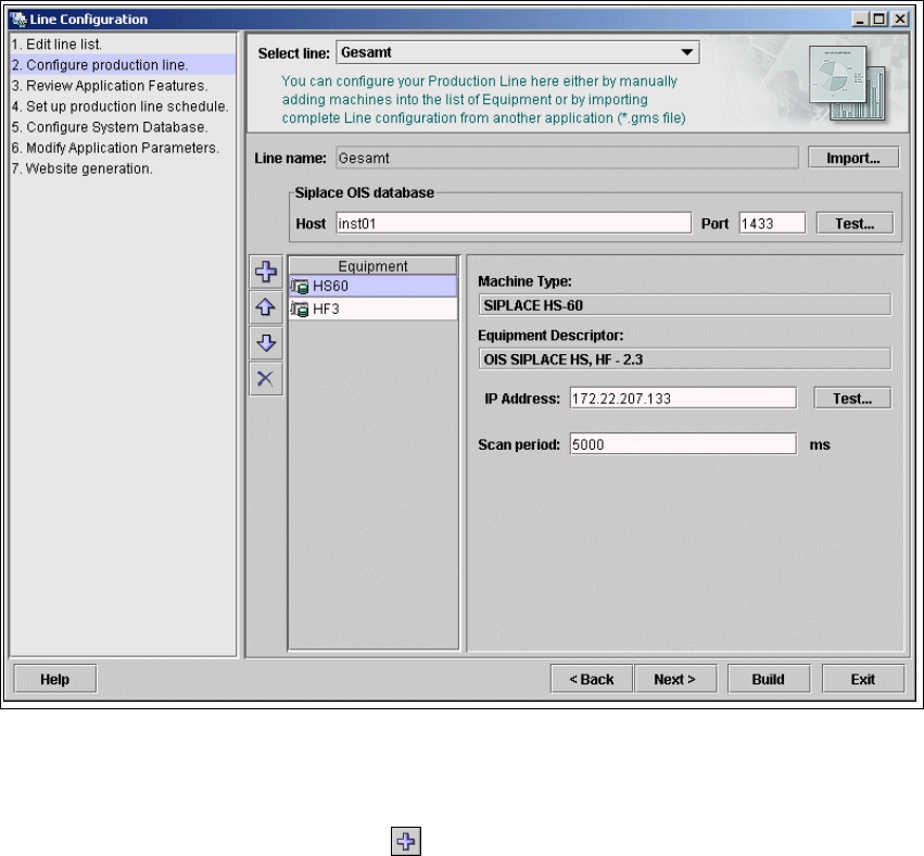 4 Configuration Installation and Configuration Guide SIPLACE Explorer 4.1 Standard Monitoring Application (SMA) Edition 02/2005 EN 68 4.1.1.3 Step 2 - Confi gure Production Line → This is where you can configure your pro…