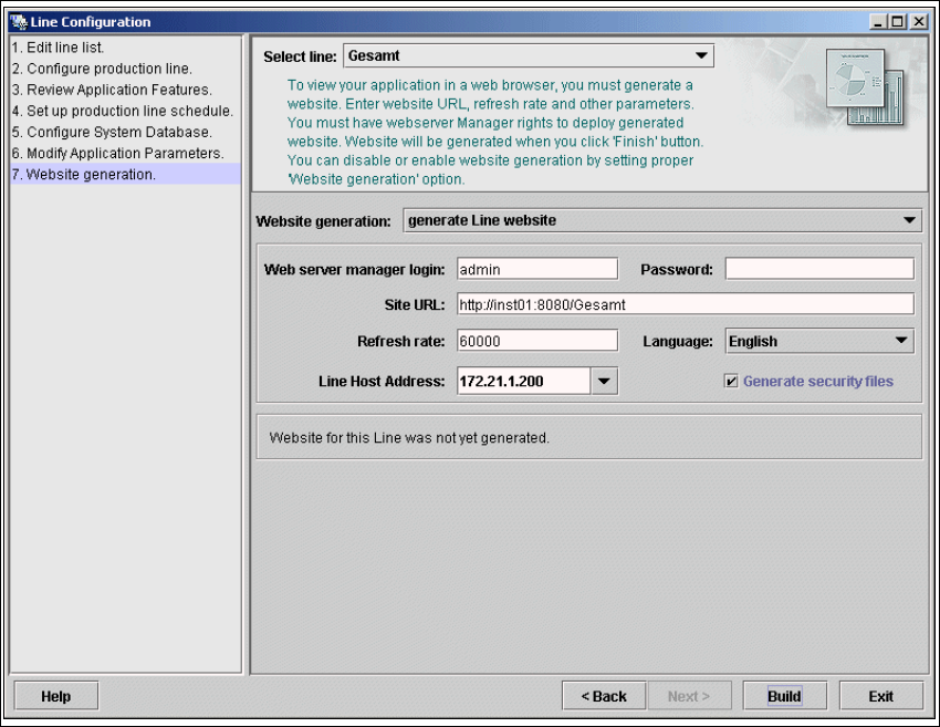 Click on the Exit button in the Line Configuration - Website Generation dialog box.