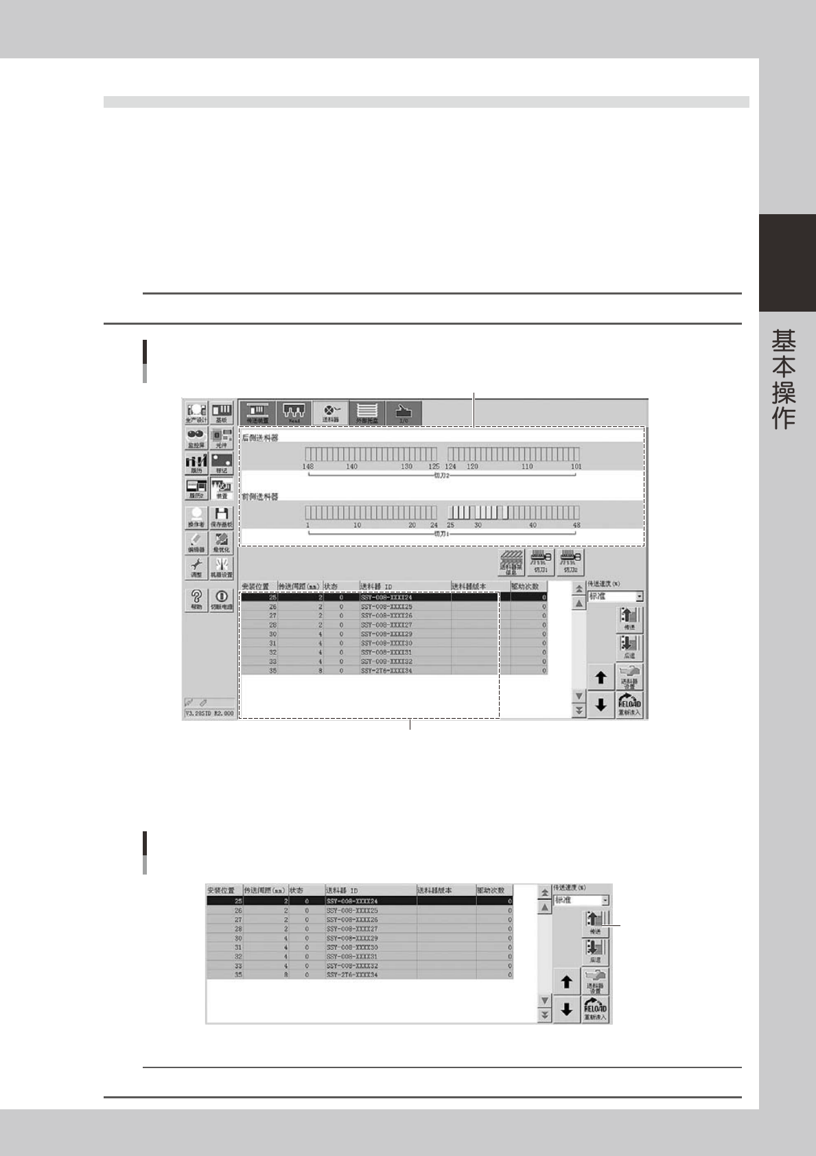 按 [ 装置 ] 按钮选择「送料器」选项卡,打开送料器画面。