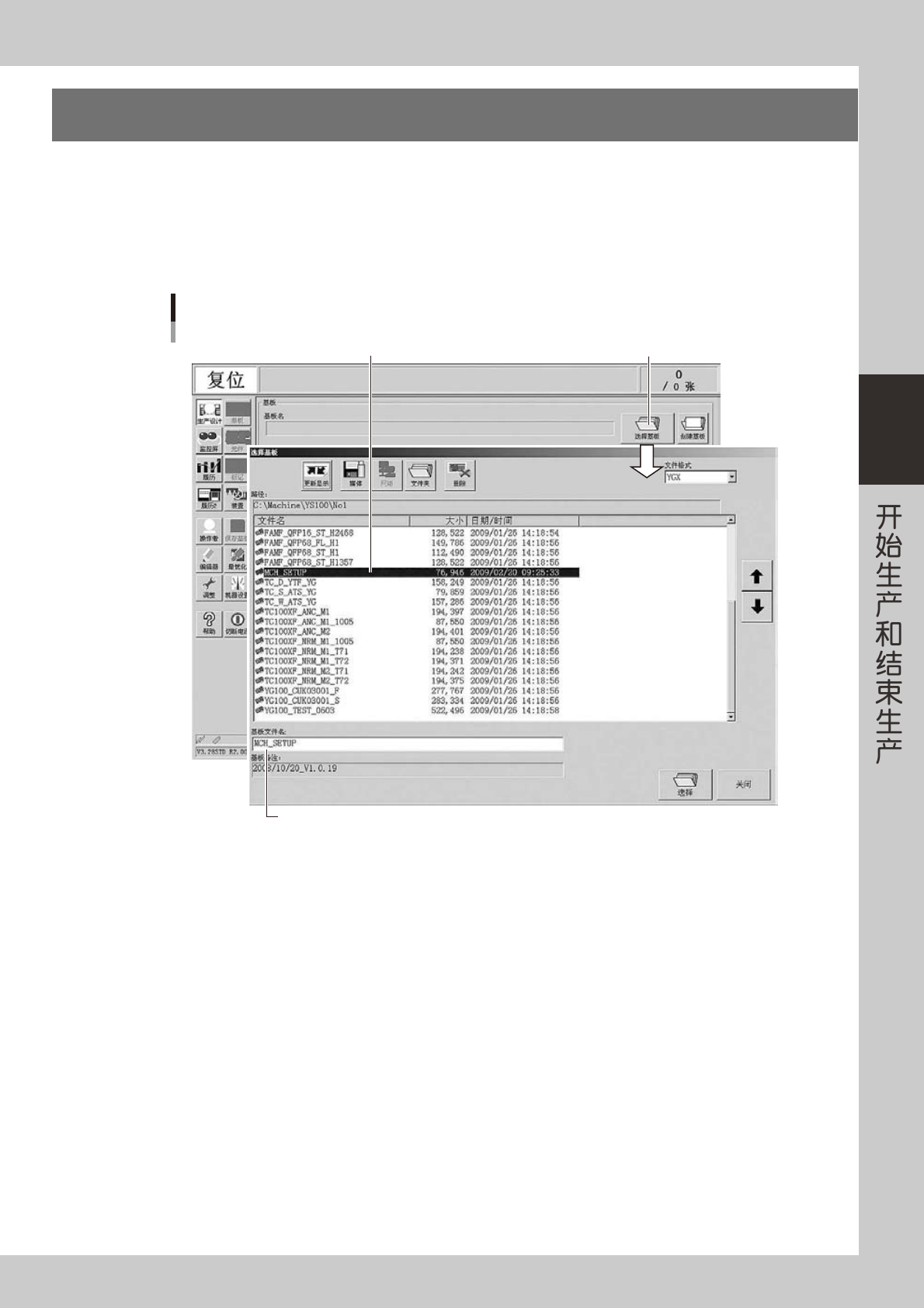 2. 将光标移至要生产的基板名栏并按 [ 选择 ] 按钮。读入所选基板程序。