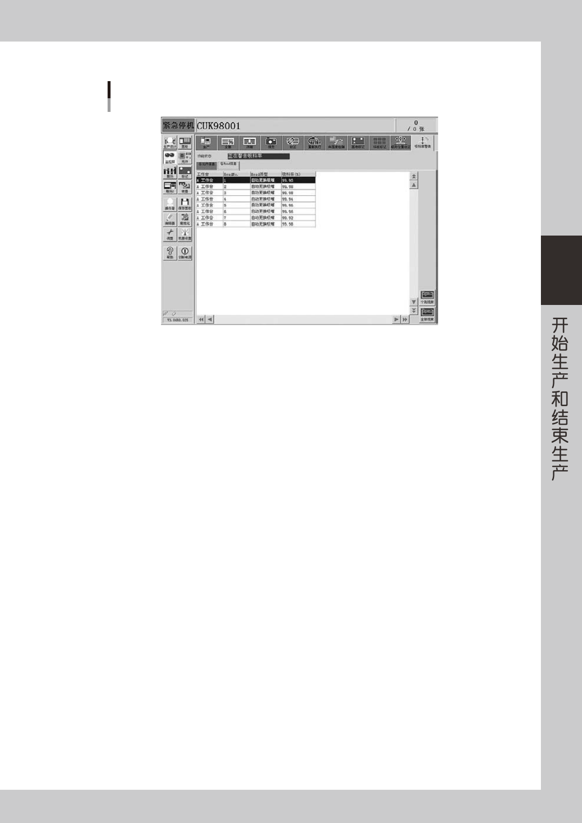 显示各贴装头的吸料率。吸料率的计算公式 :1-([ 出错次数 ]÷[ 消耗数 ])= 吸料率