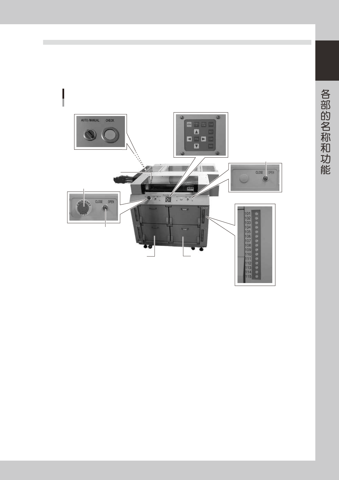 旋至「CLOSE」时,载料箱装载柜的柜门被锁定,柜门开关的指示灯亮灯。