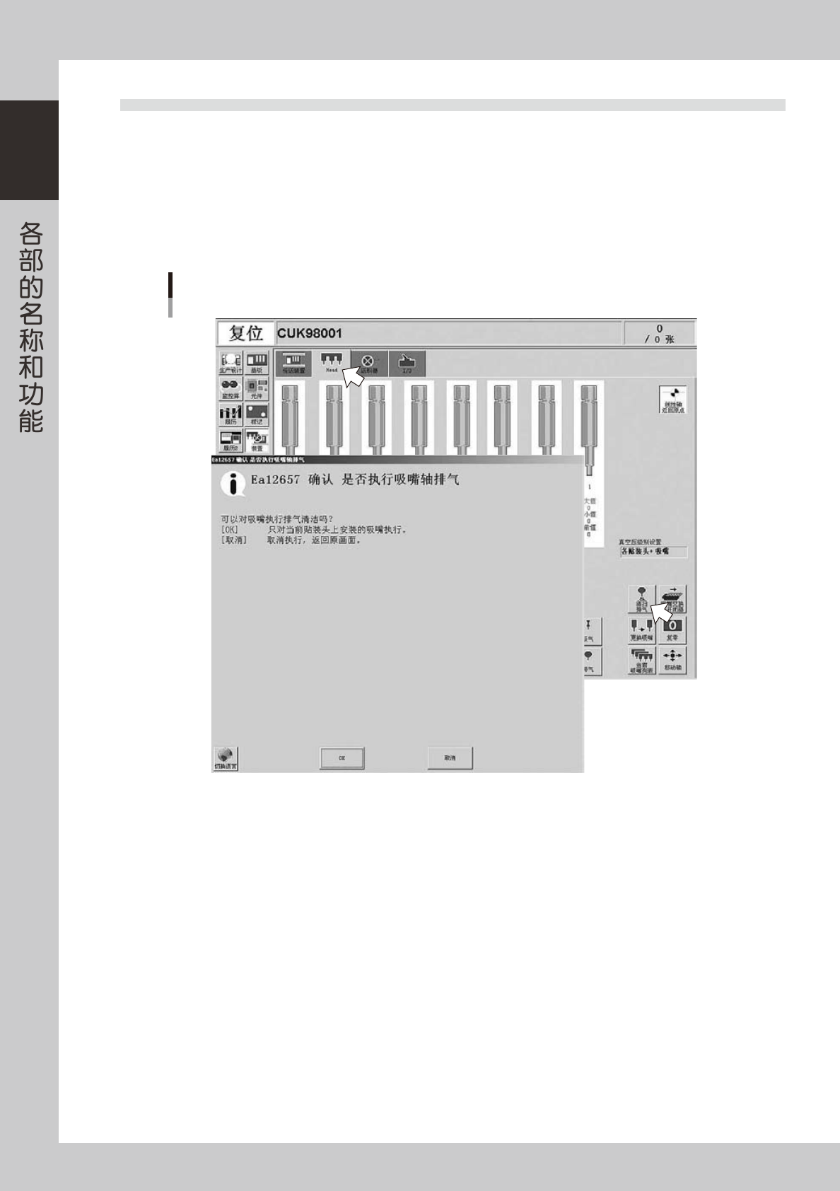 下面,介绍在任意时机手动进行吸嘴轴排气的方法。