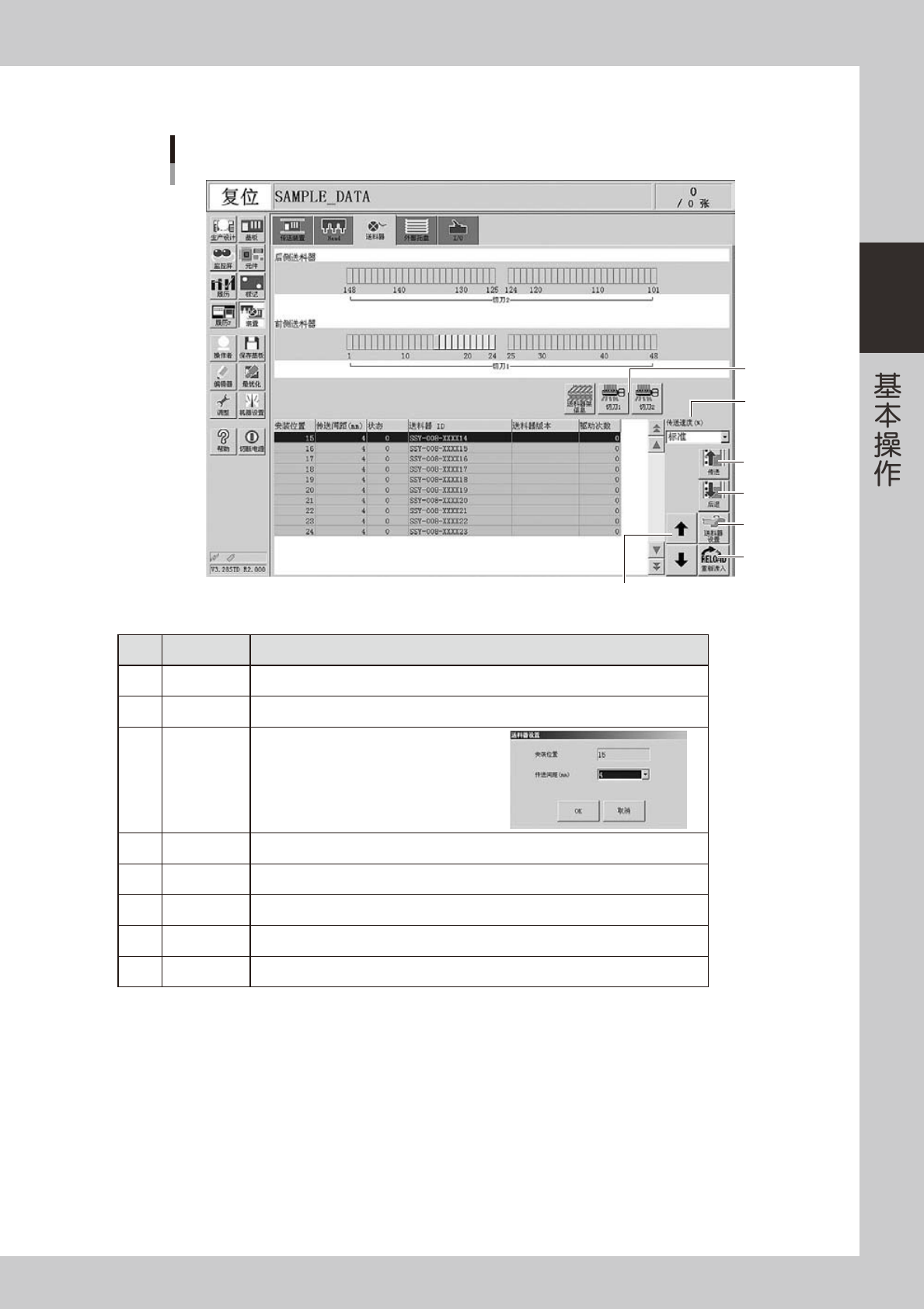 「装置」-「送料器」画面