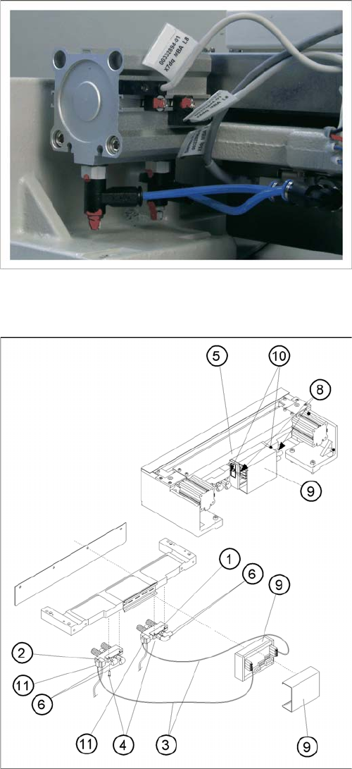 Servicearbeiten 4.3.2 Schneidgerät BE-Handling Serviceanleitung SIPLACE D4/D4i 105 ► Lösen Sie die Steckverbindung des Kabels "Steuerungsplatine Gur tschneider -Ve ntil" am defekte n Magnetventil (11) . ► Lösen…