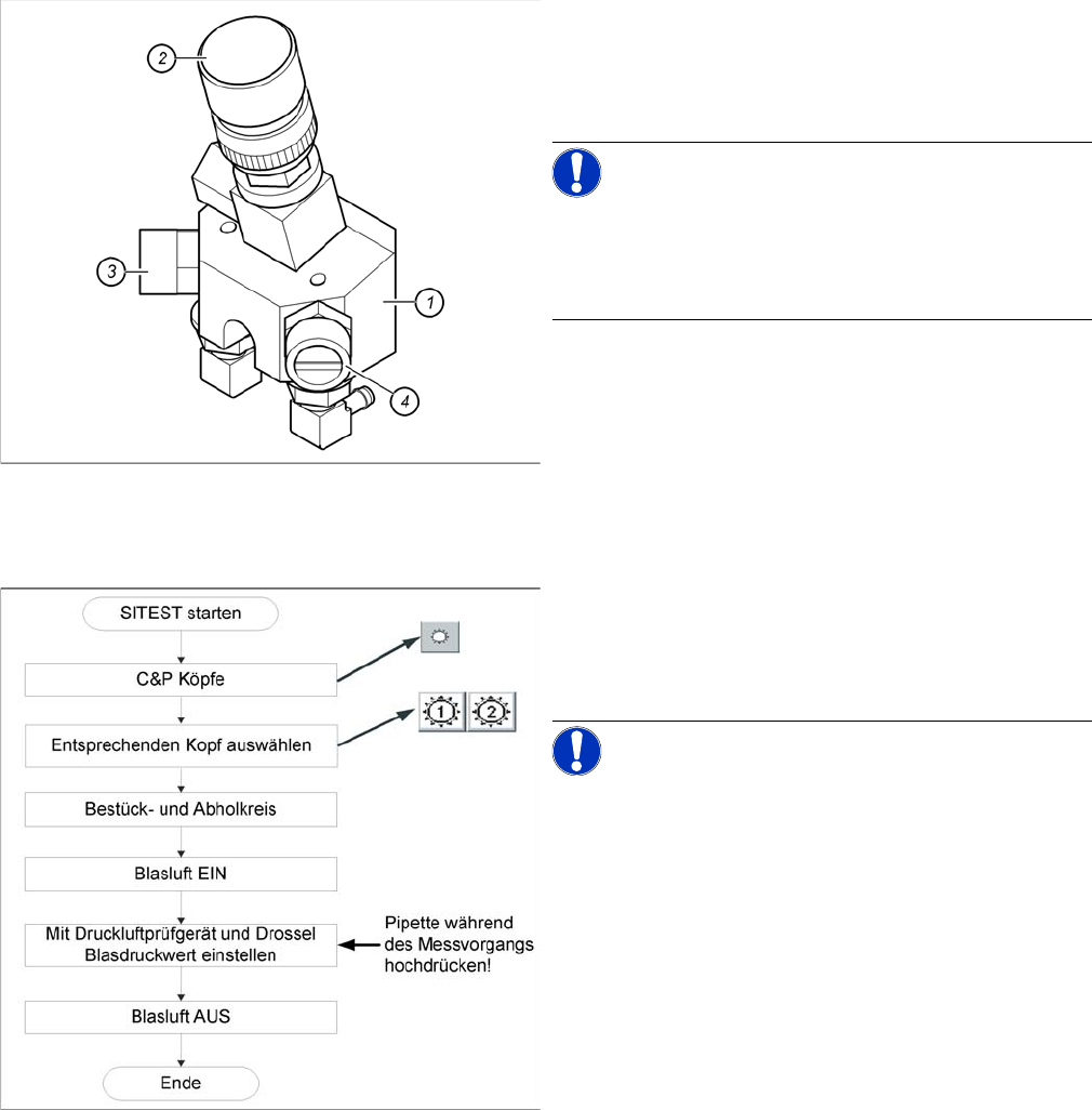 6.3.11.3 Einstellen der Blasdruckwerte mit dem Druckluftprüfgerät