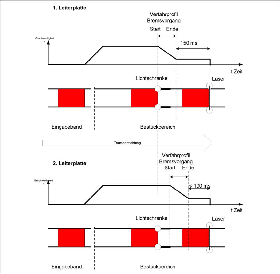 zeitig gestartet, so dass die Leiterplatte nach max. 100 ms sicher an der Laserlichtschranke gestoppt