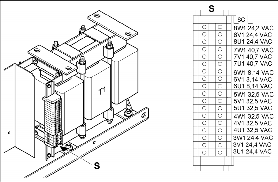 Sekundäranschlussklemmen des Transformators T1