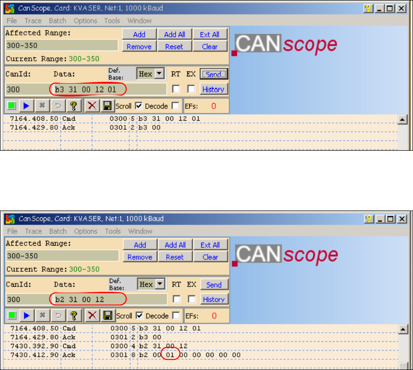 CAN ID: 301 Acknowledge: B2 00 31 00 00 00 00 00 --> ID 31