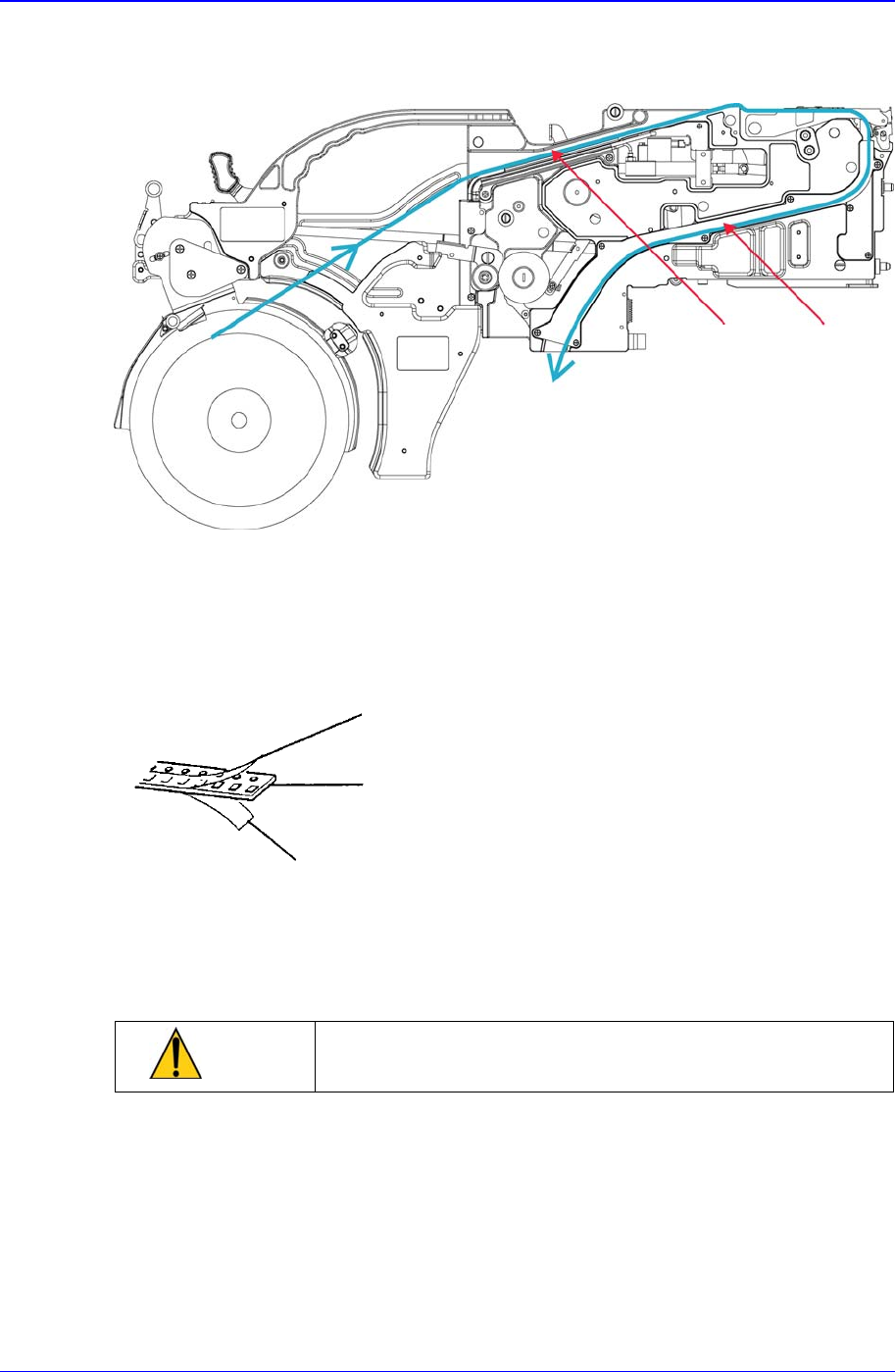 上盖卷带和传输卷带如下图所示通过料带导轨槽和主机架后,从料带的末端揭开上