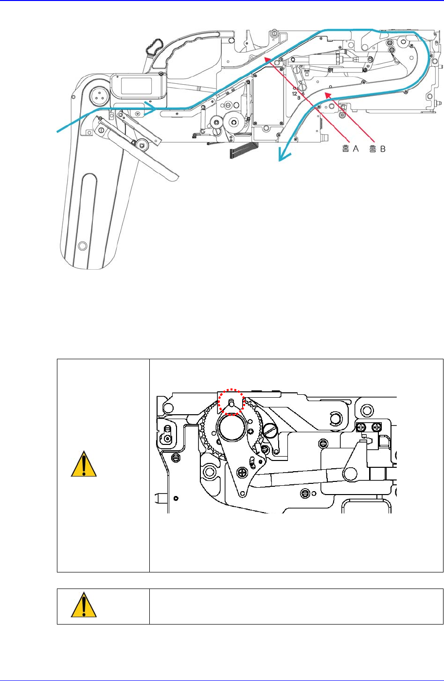 不正常紧扣于卷门槽,将无法关闭料带导轨,此时请勿强制