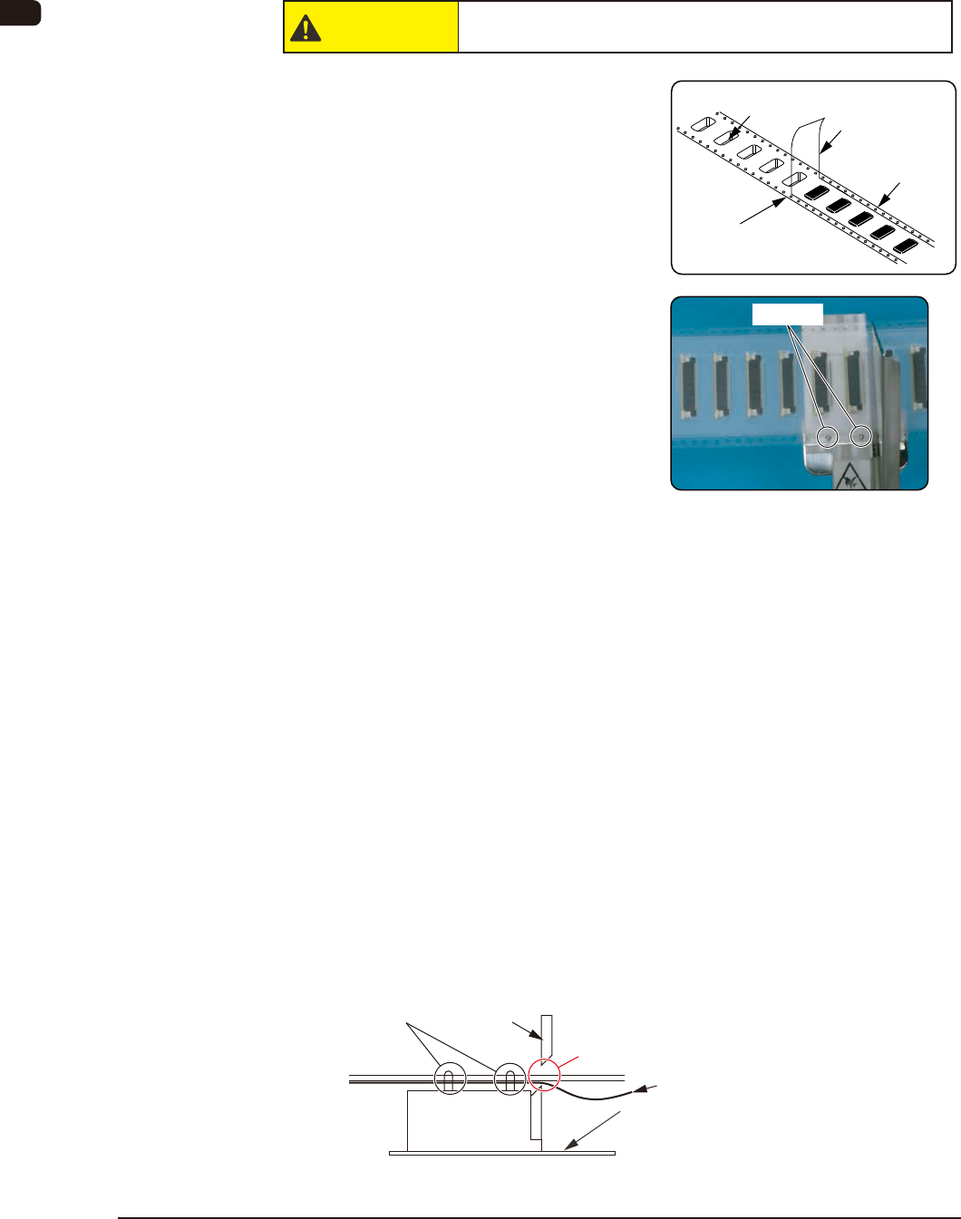 OM-1606 6-32 6. Splicing 101 1-003 6.9 44 mm, 56 mm, 72 mm and 88 mm Width T ape Splicing Procedure 6.9.1 Cutting New T ape CAUTION Cut it off with the greatest care so as not to cut your nger . (1) Prepare a new tape. …