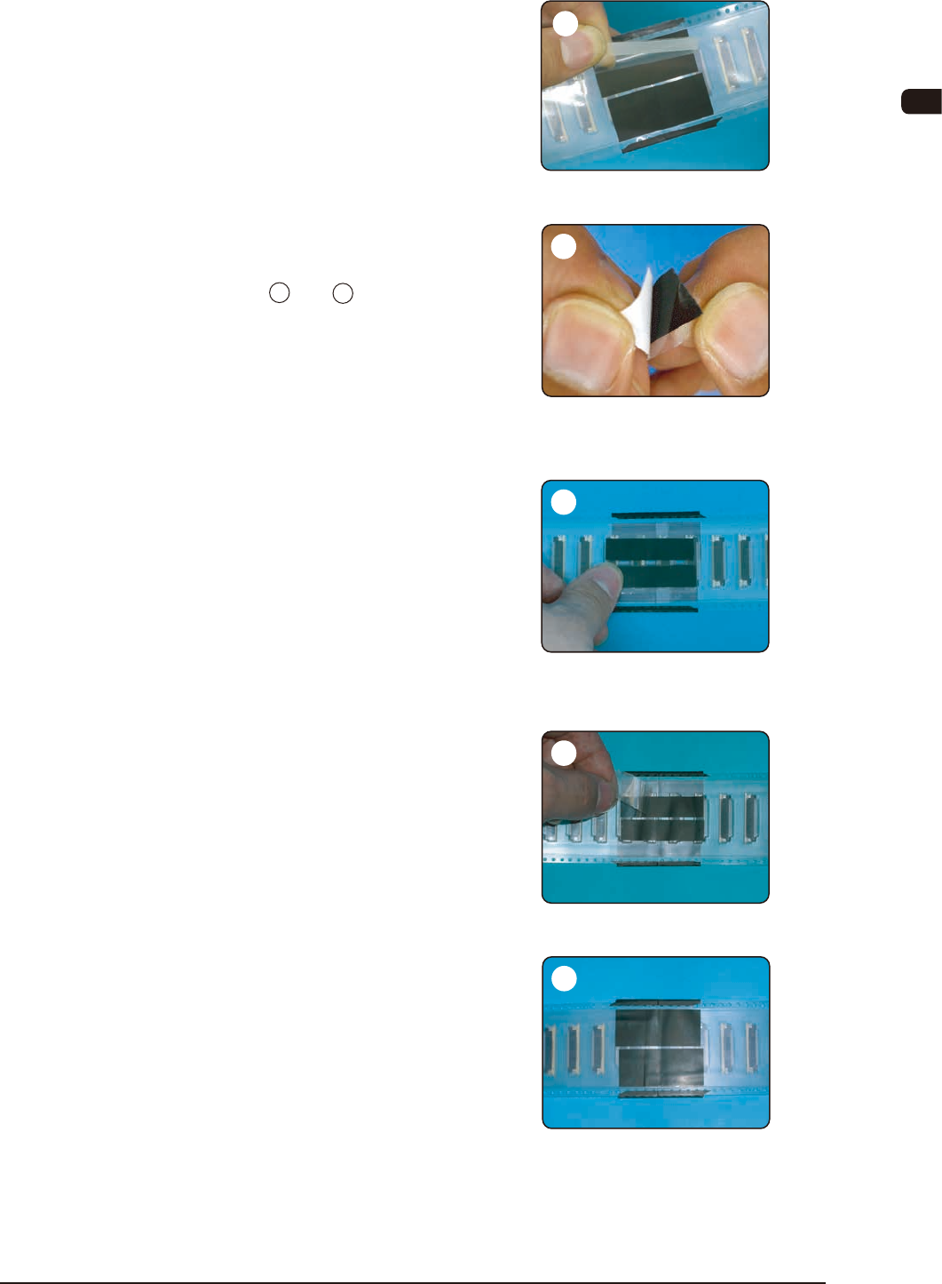 OM-1606 6-36 6. Splicing Peel off the transparent lm. Cut off the other splicing tape the same as shown in Step 1 . Peel off the white peeling paper up to the perforations and fold it as shown in Step 2 Adhere the splic…