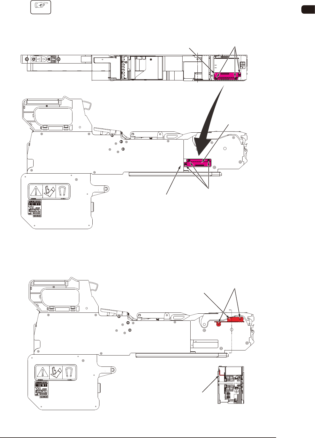 OM-1606 2-22 2. Attachment and Detachment of T ape (2) Loosen the set screw (countersunk head screw) to remove the tape guide and attach the support suppressor removed in step (1), onto the tape guide. Then, attach the s…