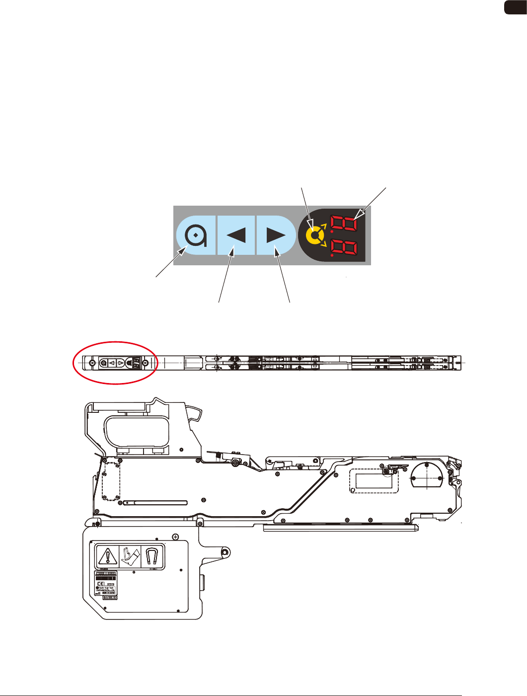 The tape feeder operation buttons and indicators are arranged integrally on the