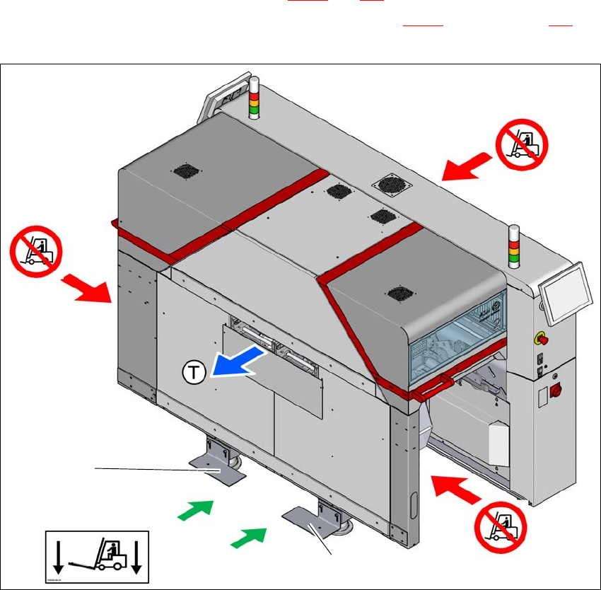 或在不带货盘的情况下运输贴片机时的叉车插入点。