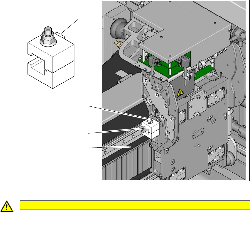 用户手册 SIPLACE TX 4 设置与调试 使用软件版本 711.1 或更新 2018 年 4 月 4.5 设置贴片机 171 4.5.2.2 移除 Y 方向的支撑架 4 图 4.5 - 2 Y 方向的支撑架 松开末端挡杆的缓冲板 ( 1) 上用于固定支撑架 (3) 的埋头螺母 (2)。 将埋头螺母远离缓冲板 ( 1) 旋松 (2) 20 至 3 0 mm。 使用 13 号 叉形扳手远离悬臂末端 (4) 旋松支撑架 (3…