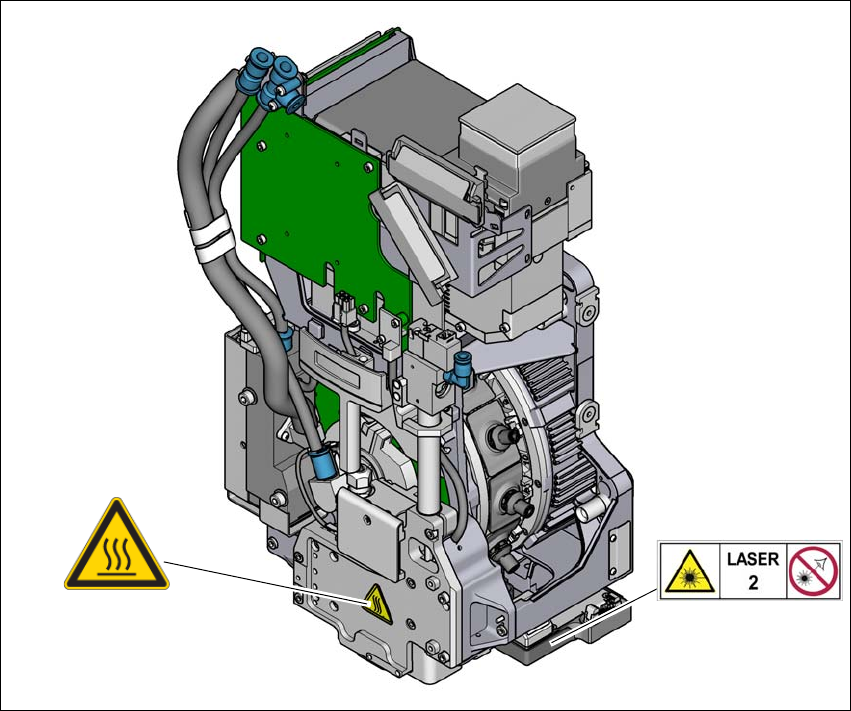 2 操作安全 用户手册 SIPLACE TX 2.2 警告标签 使用软件版本 711.1 或更 新 2018 年 4 月 50 2.2.8 SIPLACE MultiStar CPP 上的警告标签 2 图 2.2 - 10 SIPLACE MultiStar CPP 上的警告标签 (1) 高温标签,项目编号: 03031926-01 项目 激光器标签 - 2 级激光,项目编号 03155298-xx (1) 激光器标签,风险级别 2