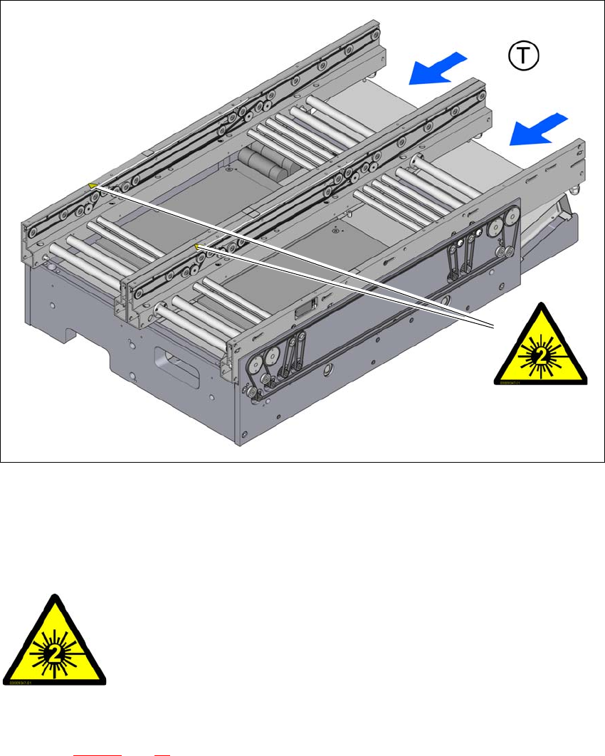 用户手册 SIPLACE TX 2 操作安全 使用软件版本 711.1 或更新 2018 年 4 月 2.2 警告标签 59 2.2.13 PCB 传送导轨上的警告标签 2 图 2.2 - 17 PCB 传送导轨上的警告 标签 项目 W 208,位 于激光光障的传送导轨边缘上 2.2.13.1 警告标签 W 208 2 W 208,图 2.2 - 17 ,第 59 页,项目编号 03009347-0 1 (PCB 传送导轨上的数量: 2…
