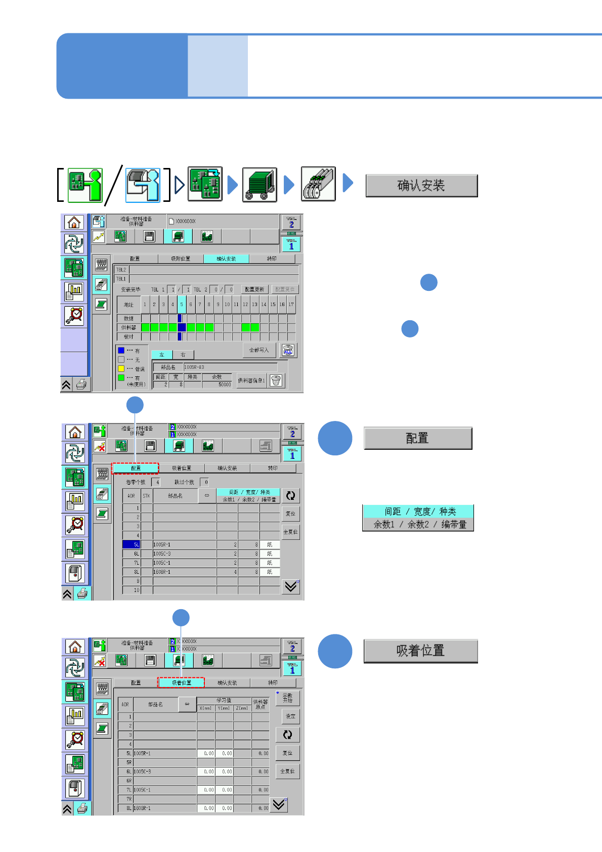 确认数据和供料器工作台上安装的生产材料是否一致。