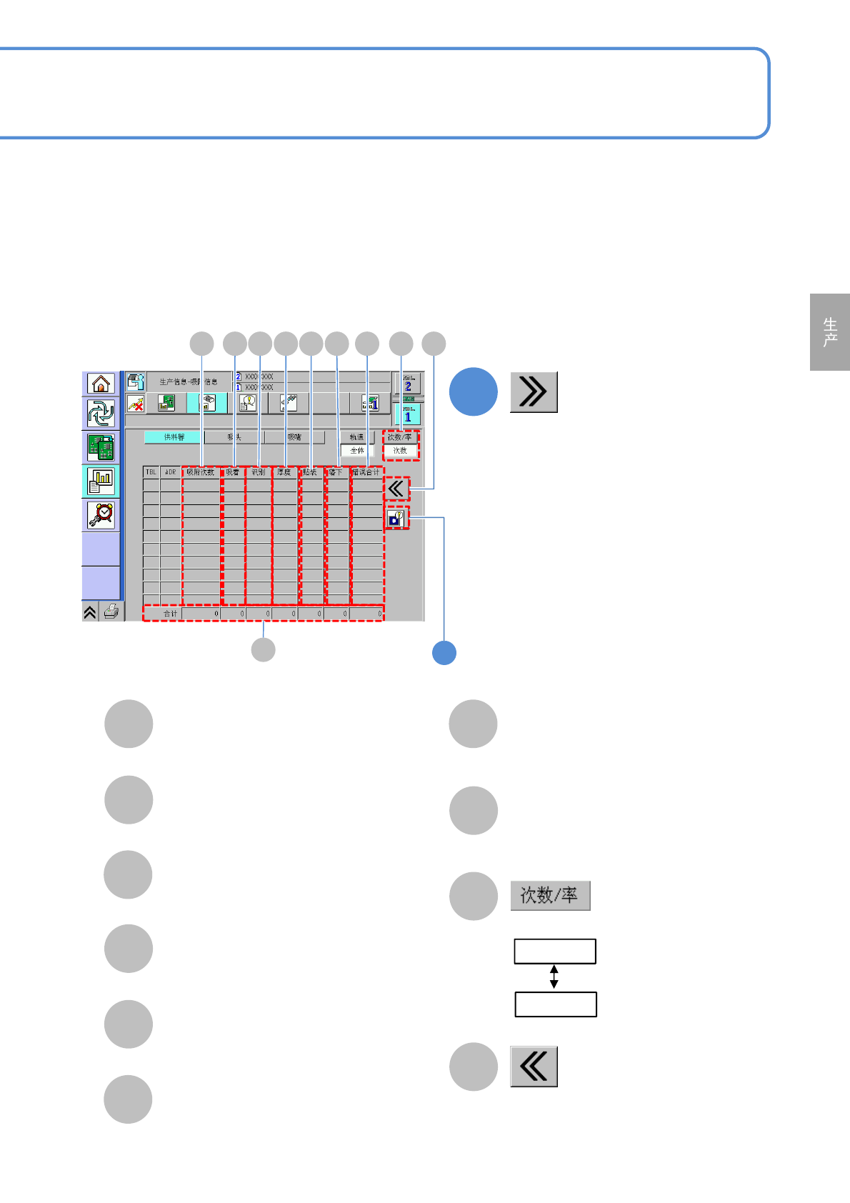 所有料架的吸着次数/率的合计,或者各