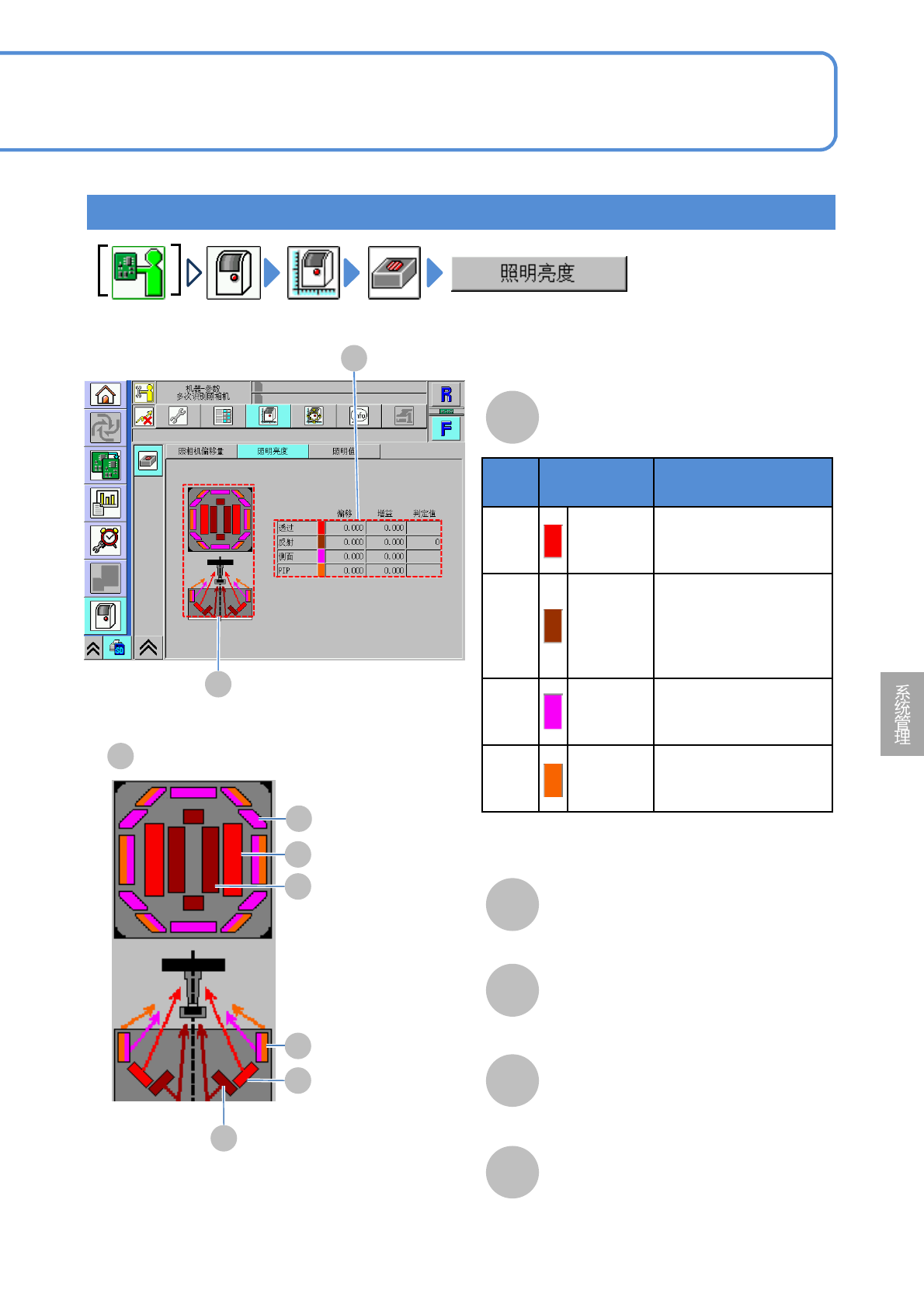 NPM-D3 EJM6DC- MB-07O- 07 机器参数 多功能识 别照相机的确认 2 A 照明模式 ●透过 : 透过模式 ● 1: 反射 1 模式 ● 2: 反射 2 模式 ● BGA: 反射 BGA 模式 設備に設置され ている フィー ダー の メモリ ー 情報 を表 示します 。 多功能识别照相 机照明值 B 照明 C 基准值 各照明的照明模 式的指示灯基 准值。 D 偏移值 各照明的照明模 式的指示灯偏 移值。 显示 颜色…