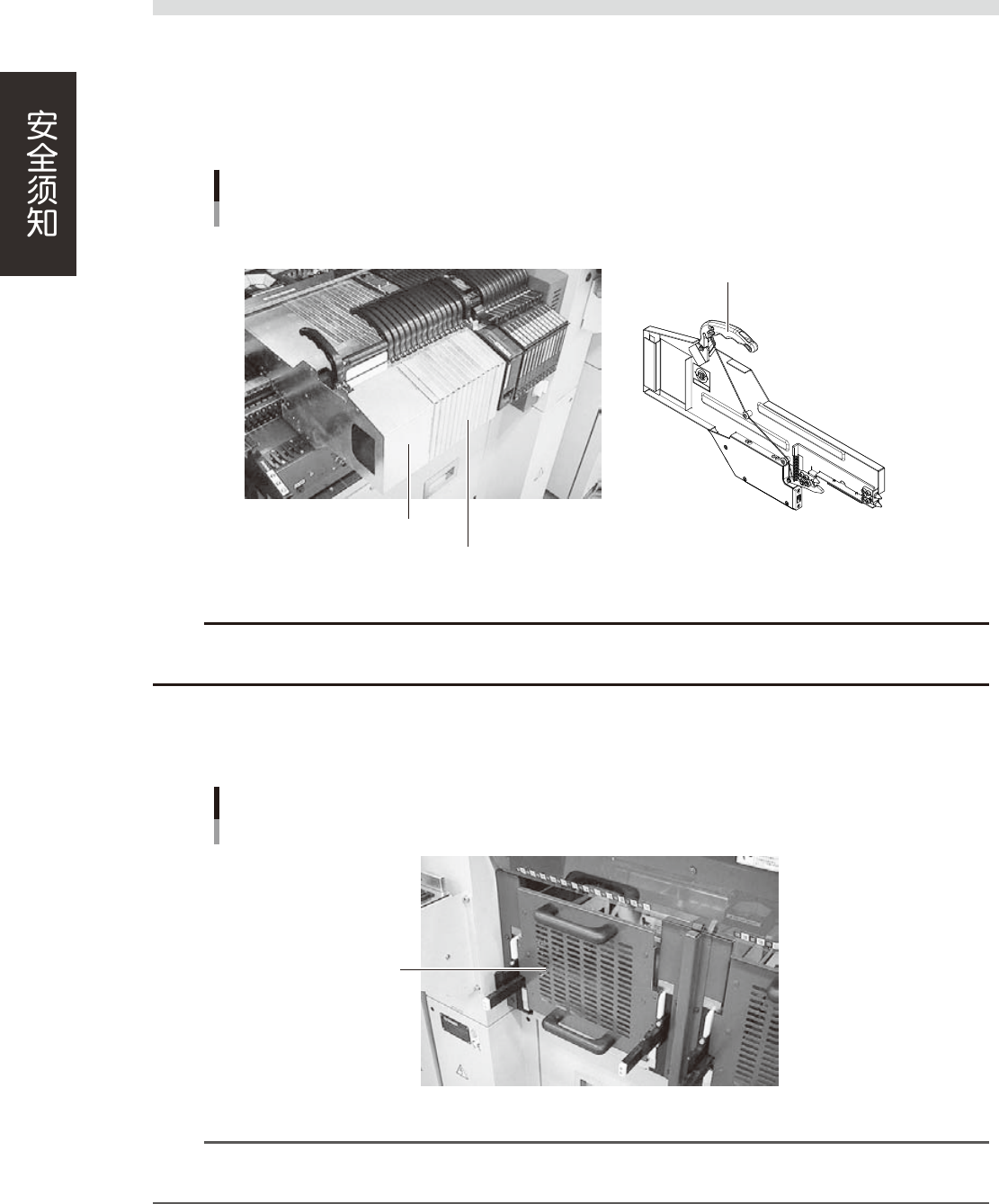 实际使用本机时,根据客户准备的设备及使用条件,手可能有误入可动部的危险。为避免手误入可动部,对开口