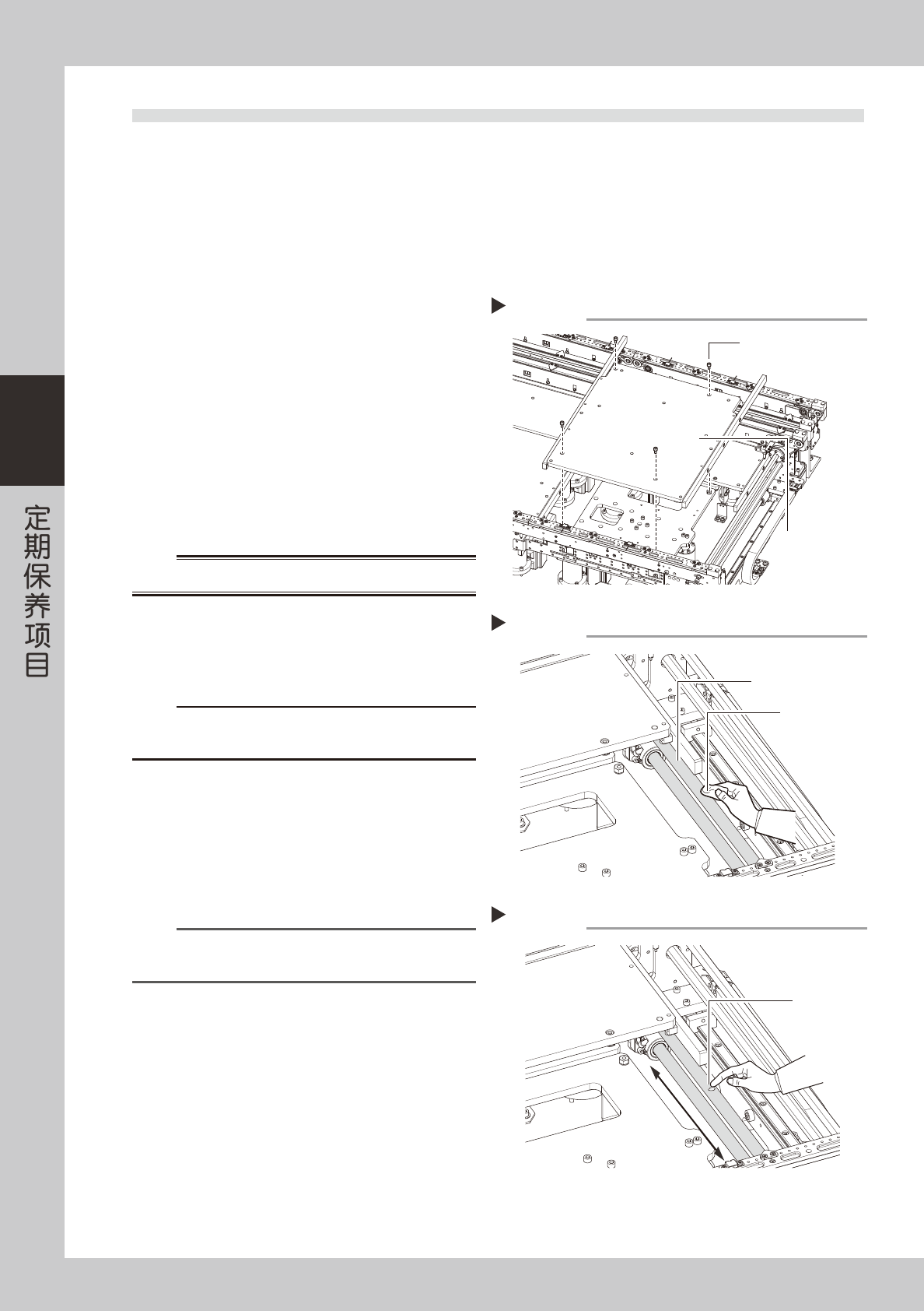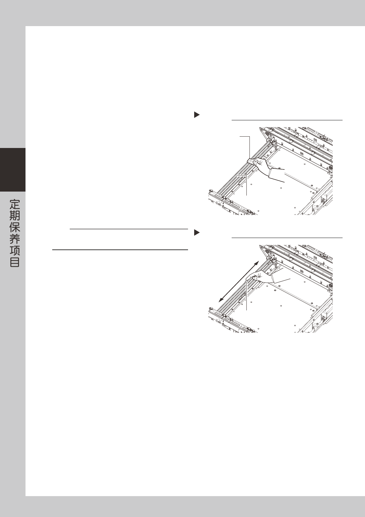 3-51 3 5.5.2 W 轴导轨的清洁与加油 1 进行作业前的准备。 e 1. 将易受磁场影响的手表、ID 磁卡等随身物品全部取出。 2. 按下紧急停机按钮,使贴片机进入紧急停机状态。 3. 将料车从贴片机上卸下。 2 将轨道 1 的传送宽度调至最大。 1. 解除贴片机的紧急停机状态,按操作画面上的 [ 装置 ] 按钮,在移动轴的画面中将轨道 1 的传 送宽度调至最大。 2. 降下顶板。 3 拆卸顶板。 e 1. 按下紧急停机按钮。…