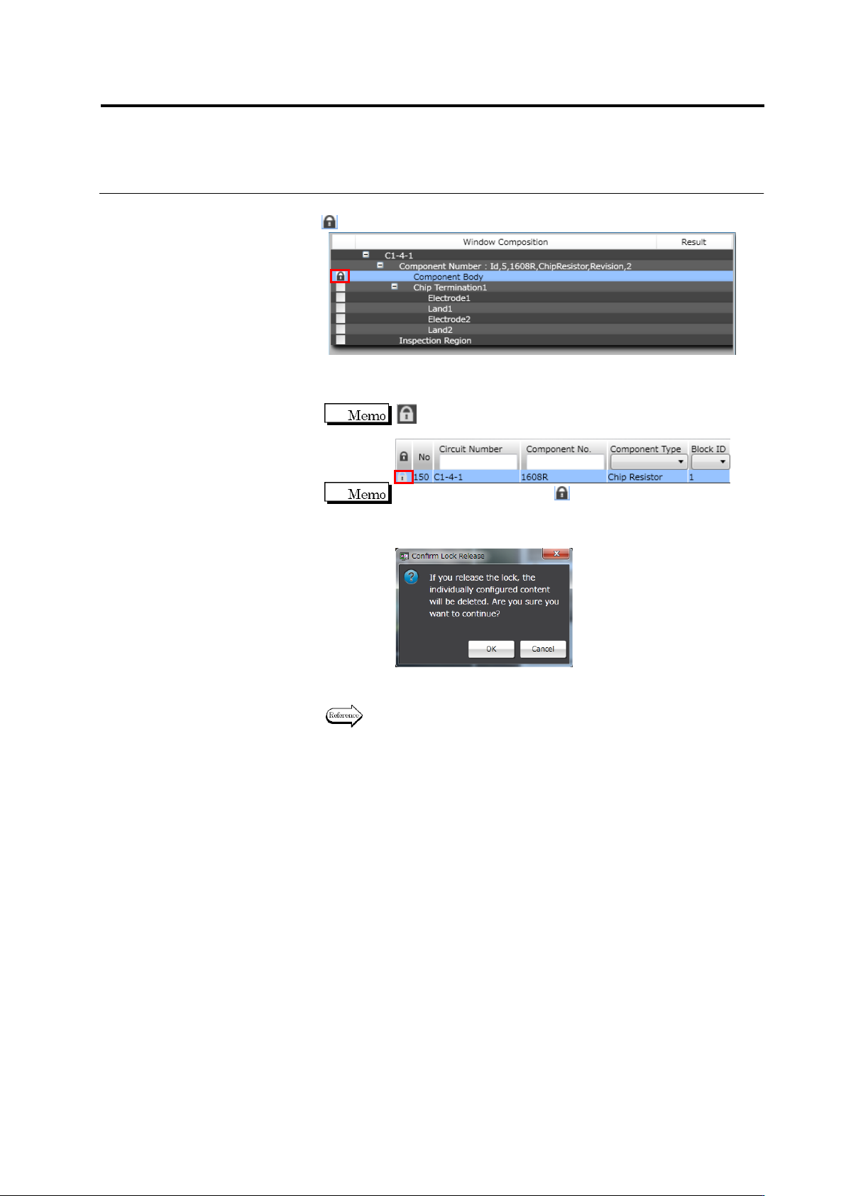 The lock release confirmation dialog appears. Click [OK] to cancel