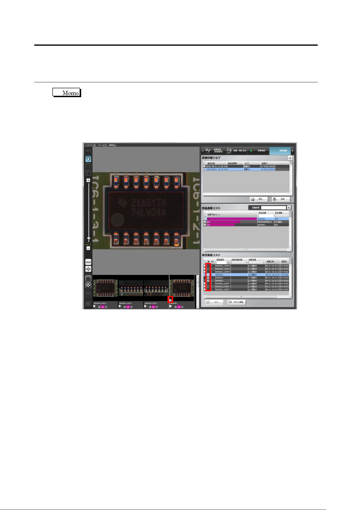 icons on the inspection component list and thumbnail screen.