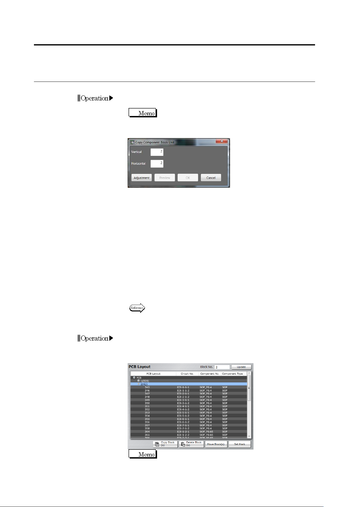 2.7 PCB/Com ponent Block Unit Setting 2- 93 3. The dialog to confirm the deletion appears . Click [OK]. Move a Component Block Unit 1. Click to select the Com ponent Block Unit to move in the PCB Layout list. 2. Click …