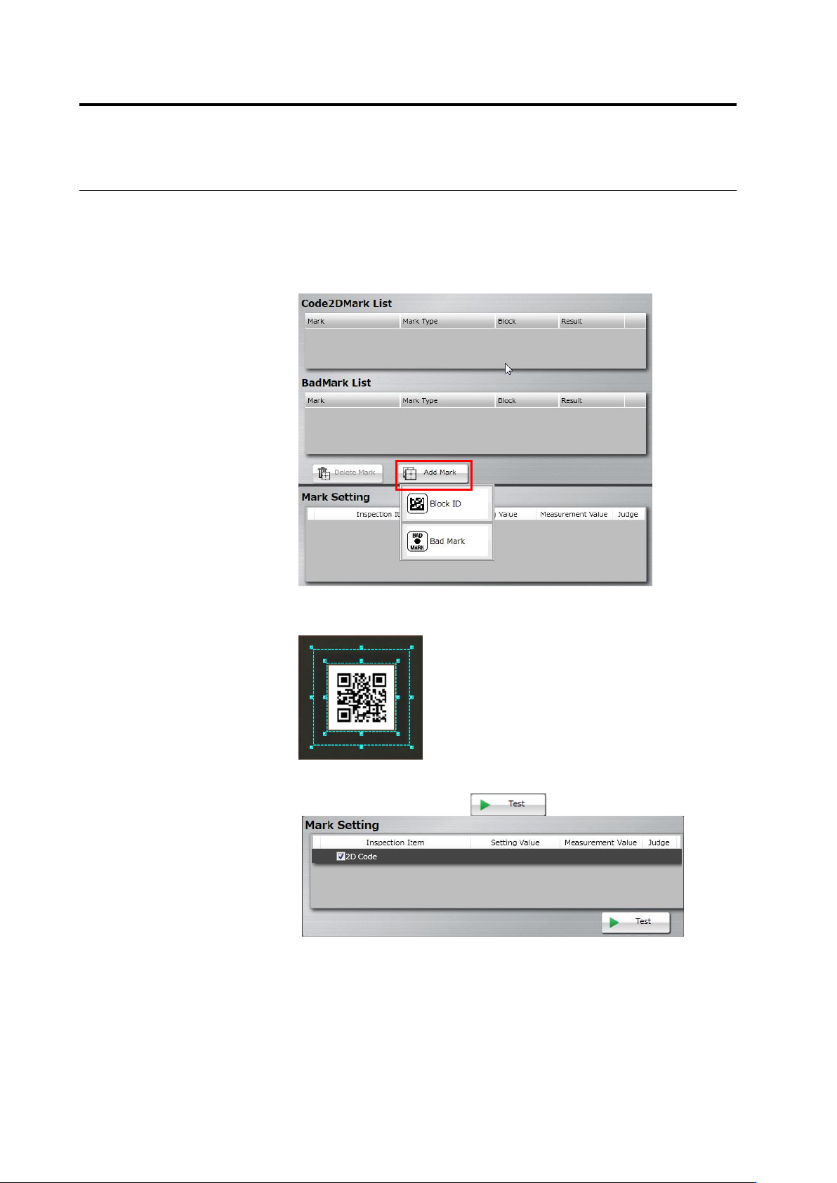 This section describes 2D code or Bad Mark setting.