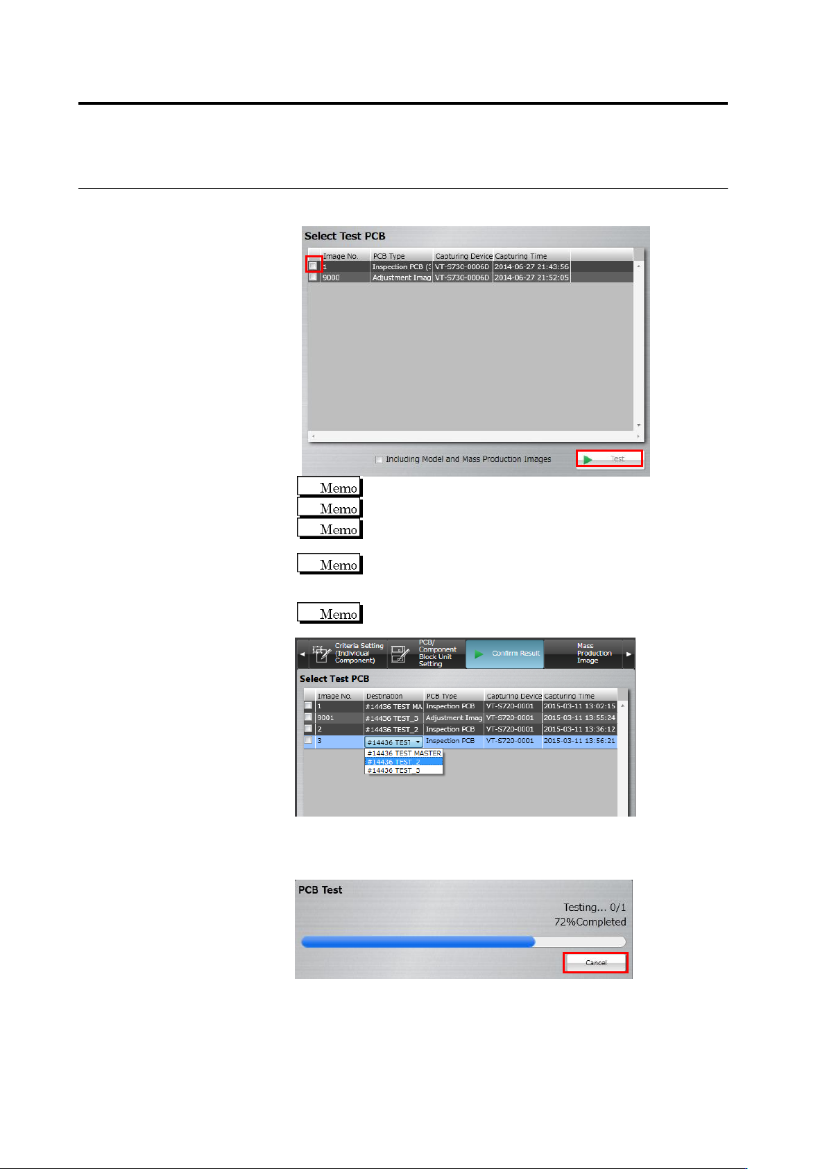 Click to select the checkbox for the PCB to use for test inspection,