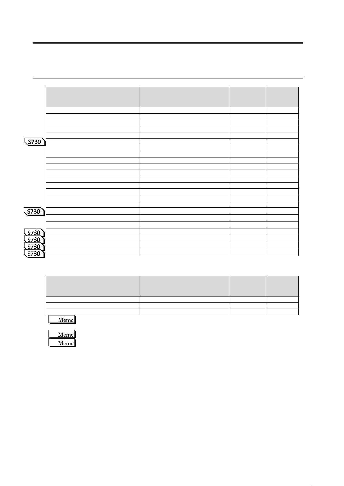 For the setting item ON/OFF column on the table above, ON/OFF status is output only for