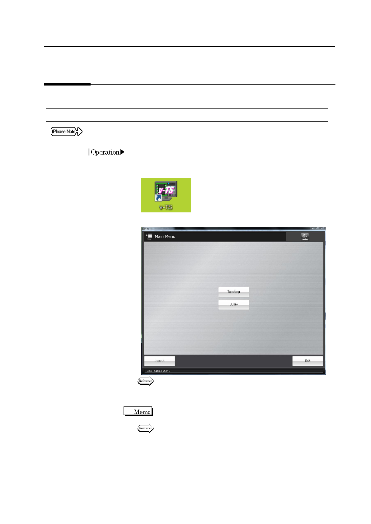 1.3 S tartup & T ermination of the S y s tem 1-7 1.3 S t artup & T ermination of the System This section d escribes how to start and end v- TS. 1.3.1 S ystem S tartup Do not start other applications at the same t…