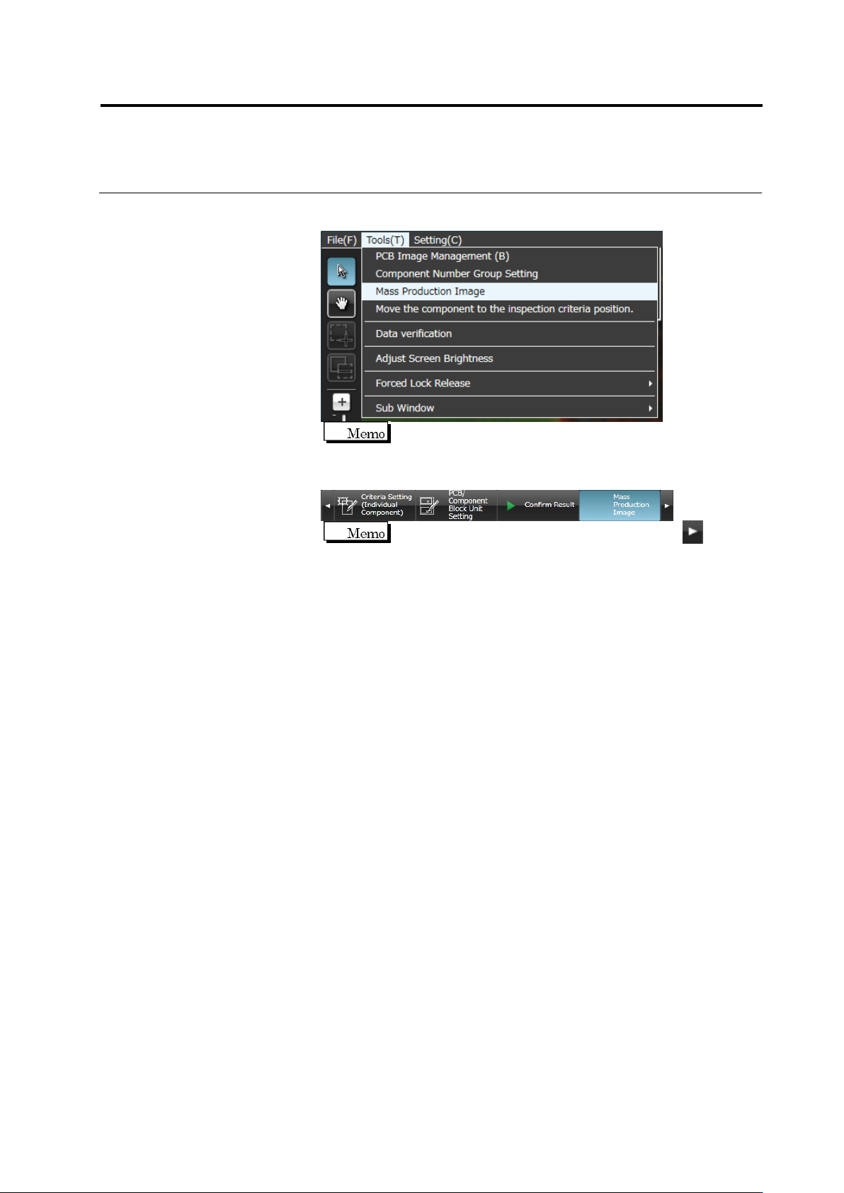 2.17 M ass-Produced PCB Image 2- 209 3. Select [Tool] – [Mas s Production Im age] in the ed iting screen m enu bar Unle ss the component registration is completed, the ite m is shaded and cannot be selected. Or select th…
