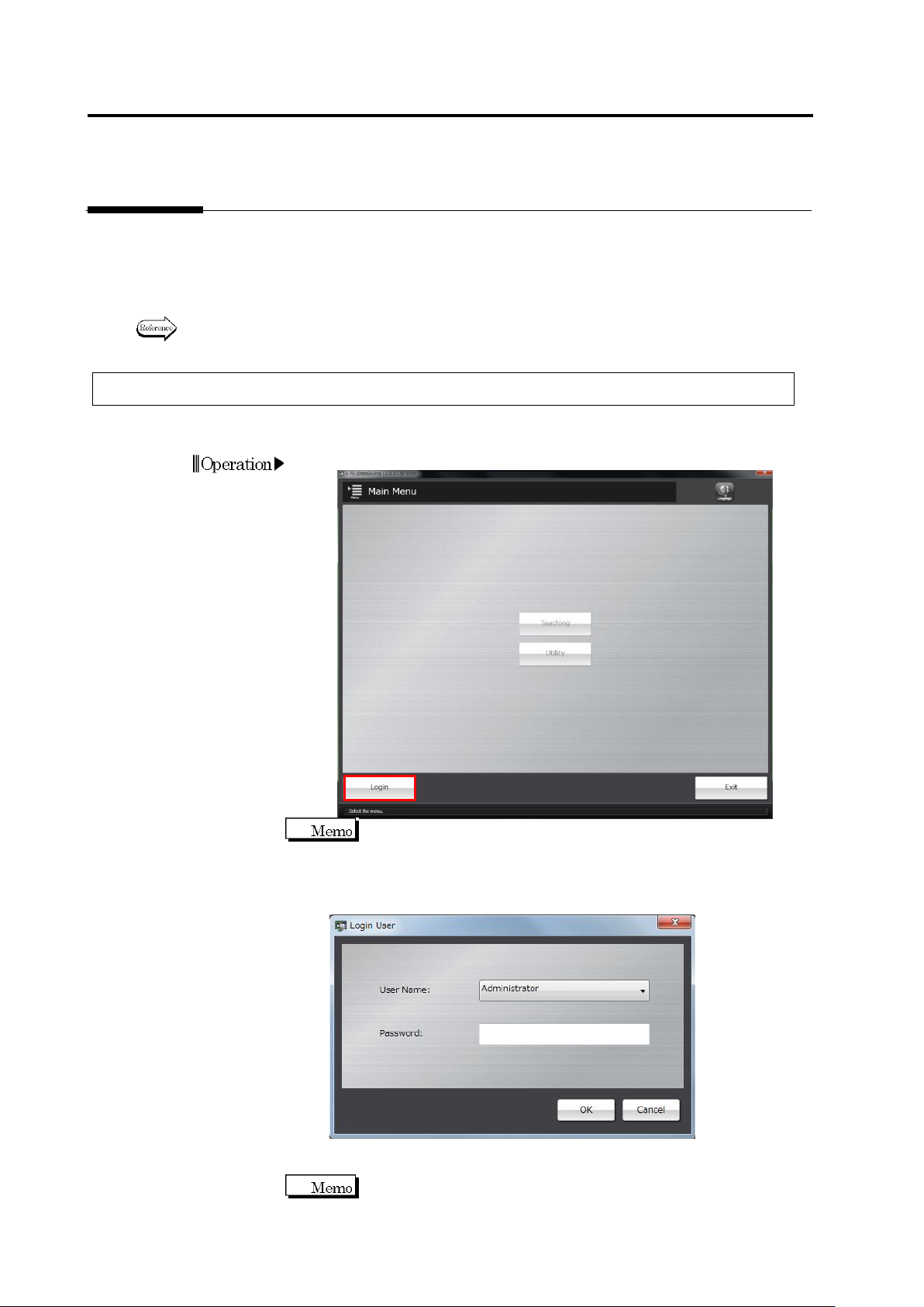 Chapter 1 Before Gett ing S tarted 1- 10 1.5 Login and Logout After the system start s, follow the lo gin procedures f rom the main menu. Without f ollowin g the procedures, no menu ca n be started. After all the op erat…