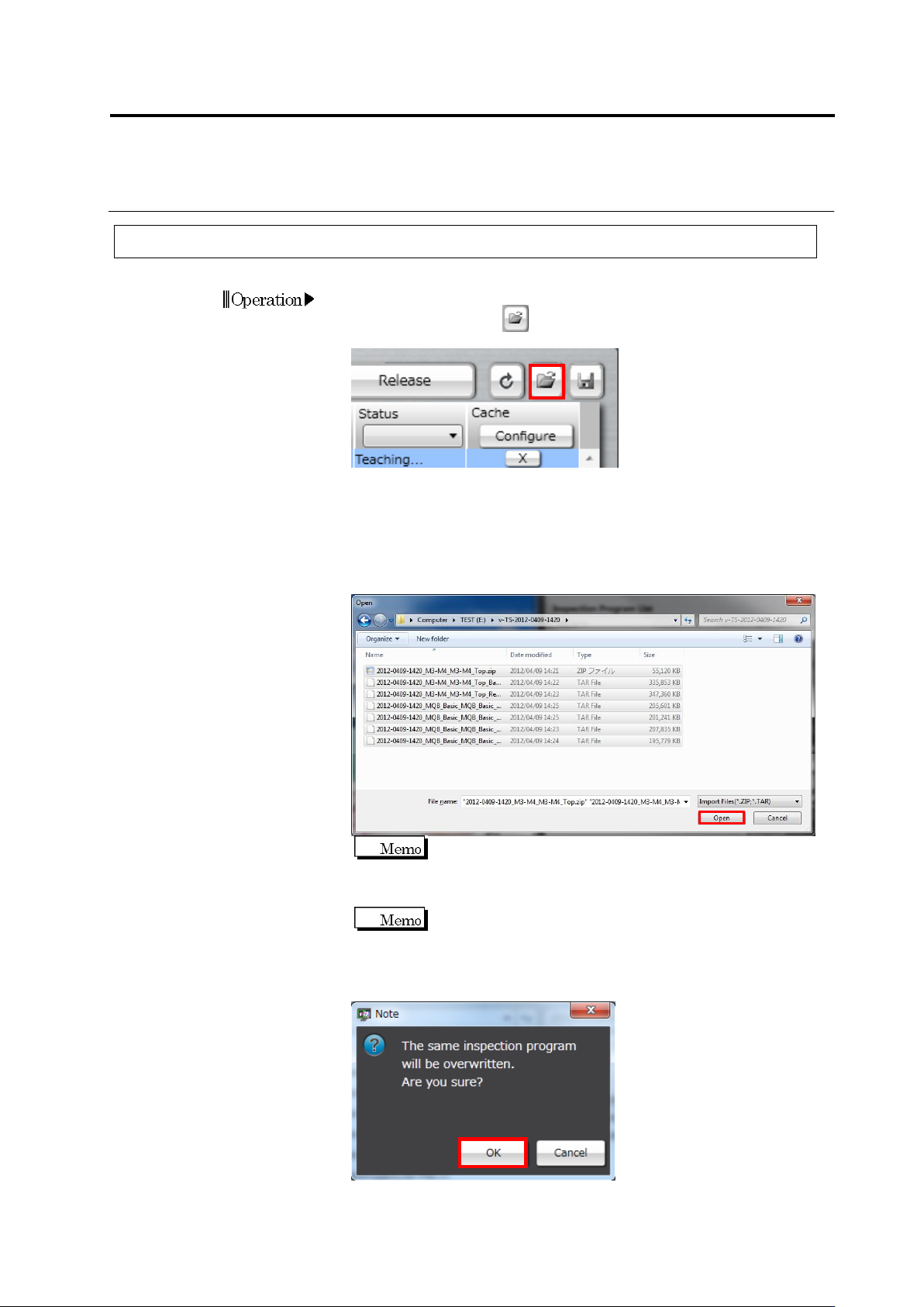 2.17 M ass-Produced PCB Image 2- 215 2.18.2 Reading an Insp ection Program 1. To read the saved ins pection program on the PCB selection screen, click the read button at the upper right of the inspection program list. 2.…