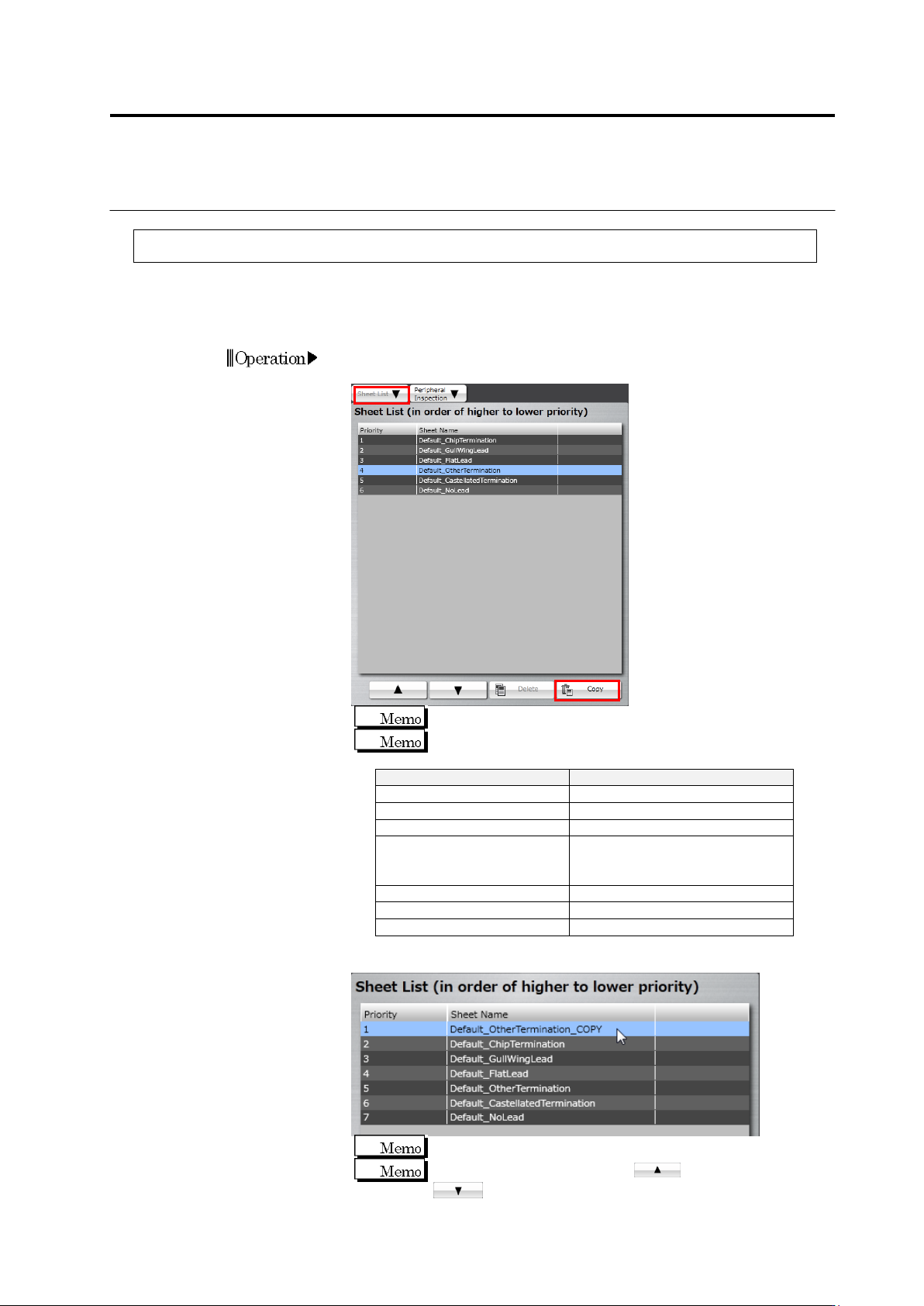 the criteria in a sheet with higher priority are used for the initial setting.