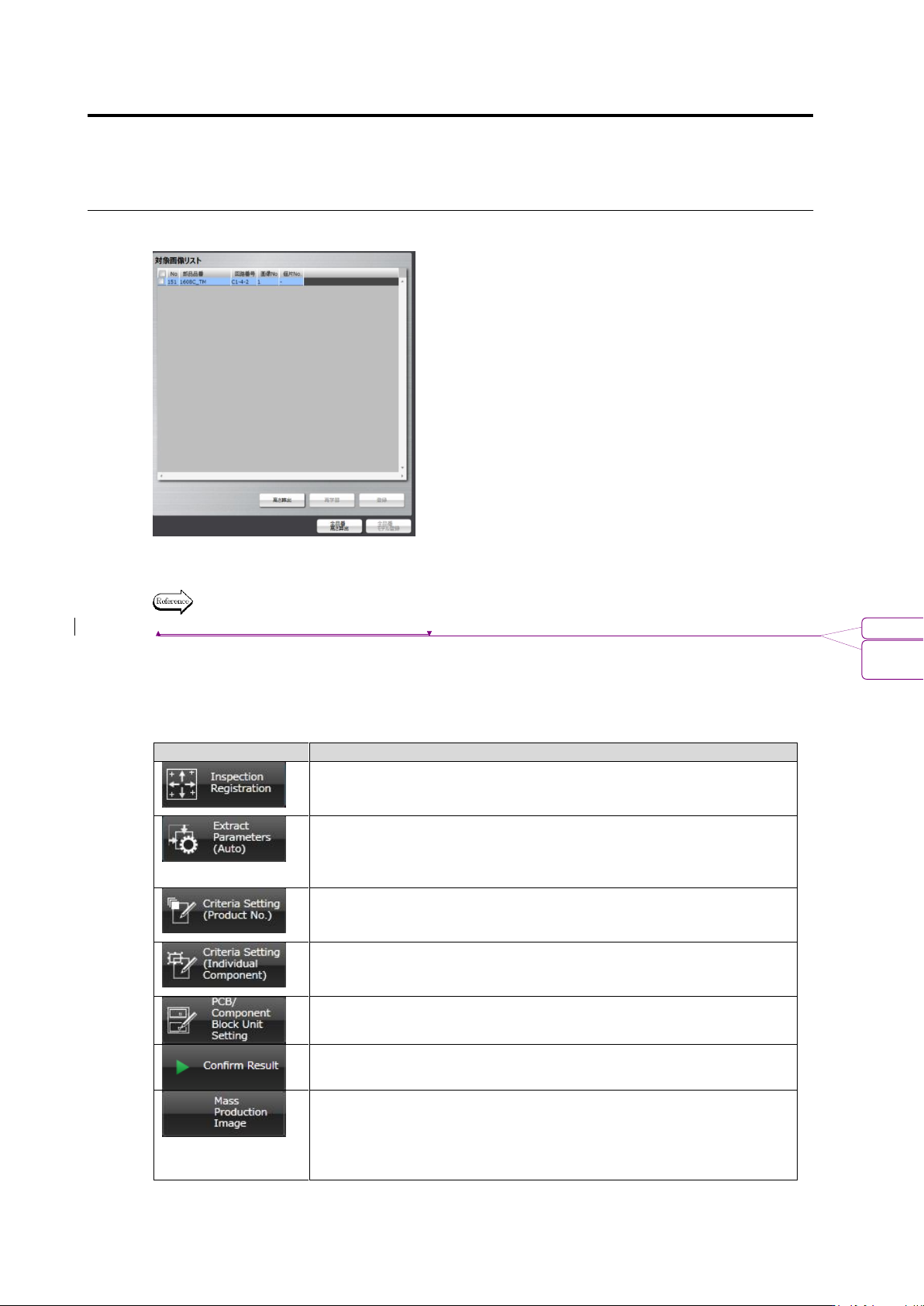 Chapter 2 Inspection Programm ing 2- 16 ■ Target Im age List For the component of the thum bnail image displayed in the im age display area, height calculation, re-learn ing, and so on are perf ormed. For the detai ls of…