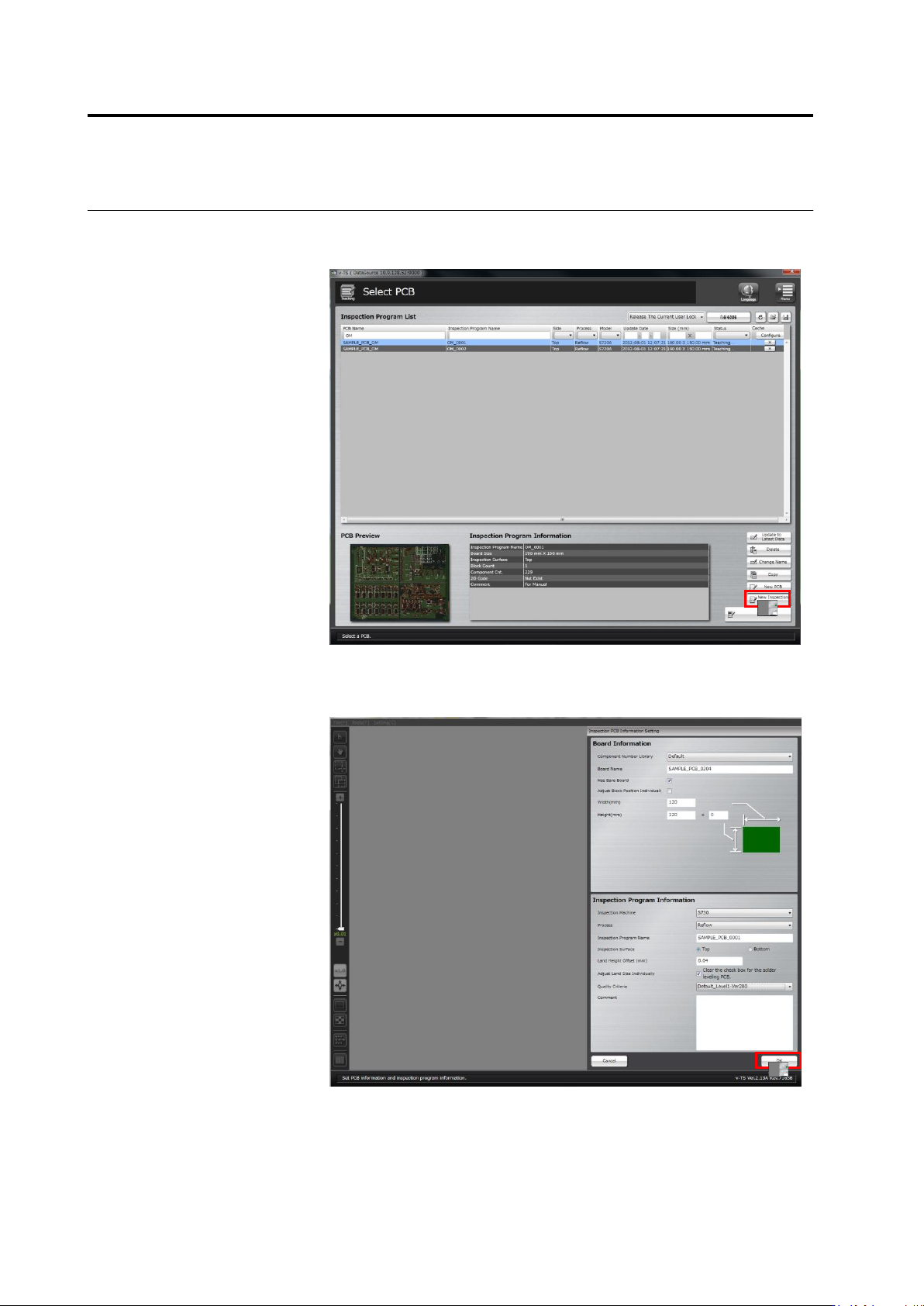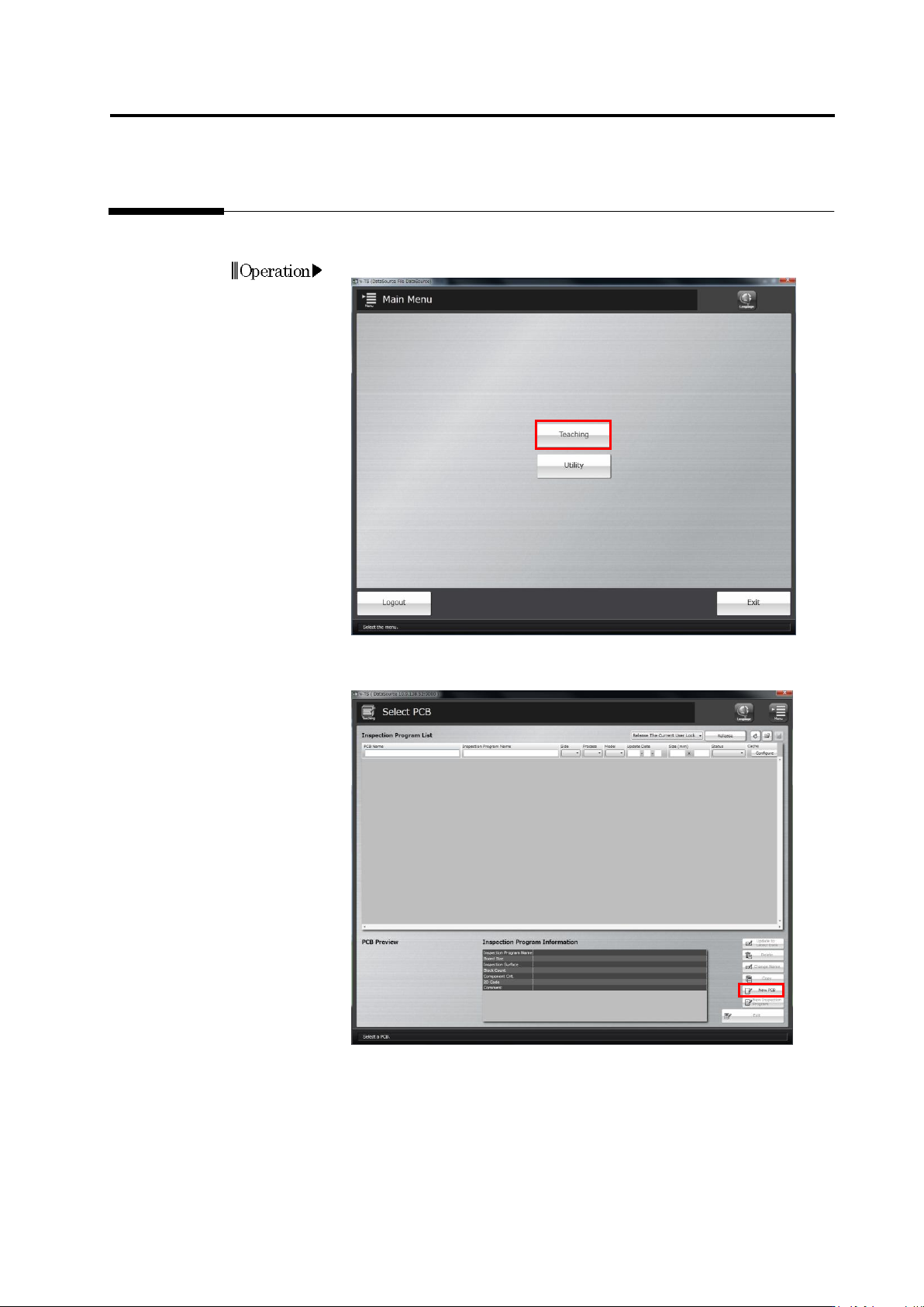 2.2 Creat ing a N ew Inspec tion Progra m 2- 25 2.2 Creating a New Inspec tion Program This section describes the procedure to create a new i nspection program . 1. Click [T eaching] in the main m enu. 2. The Select PCB …