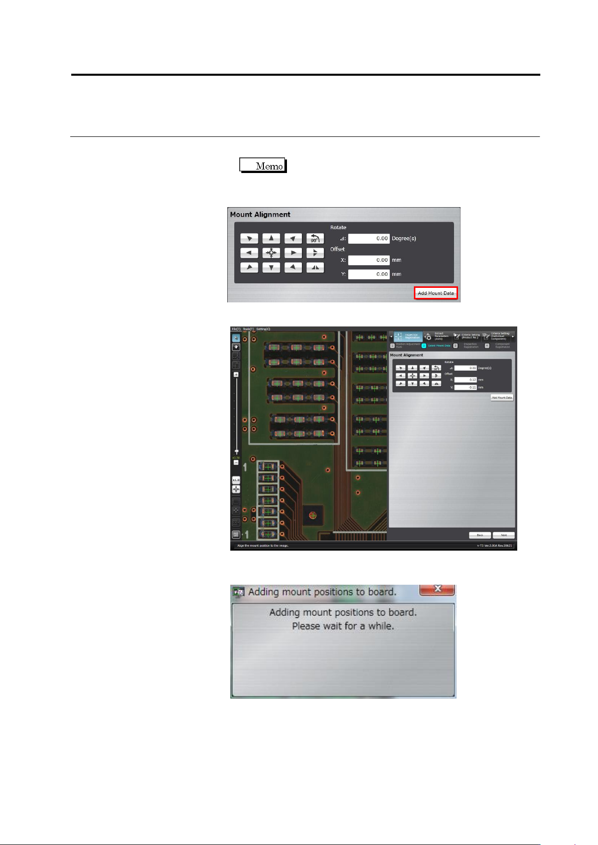 2.4 Registeri ng f or Insp ection 2- 49 Up to two decimal places can be entered for the rotation angle and offset values. 2. Click [Add Mount D ata] to add m ore mount data and repeat Ste p 1. 3. Click [Next]. The mount …