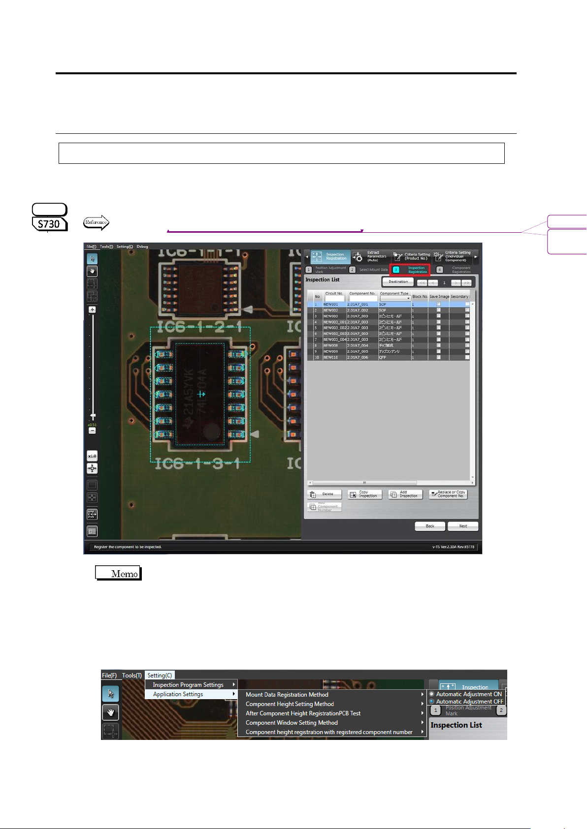 Also the components whose images are saved while inspection is performed can be selected.
